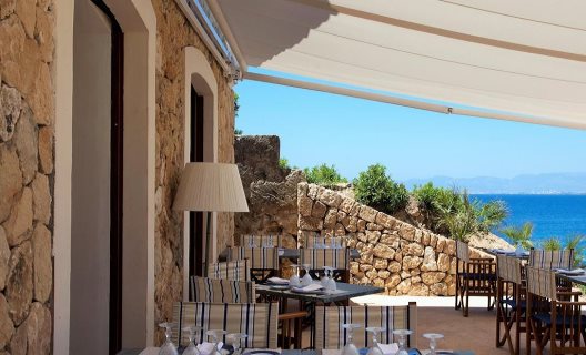 Set against dramatic cliffs and surrounded by protected coastline, Cap Rocat offers refined Mediterranean dining in a setting that feels both intimate and extraordinary. The approach by helicopter makes the experience even more unforgettable.