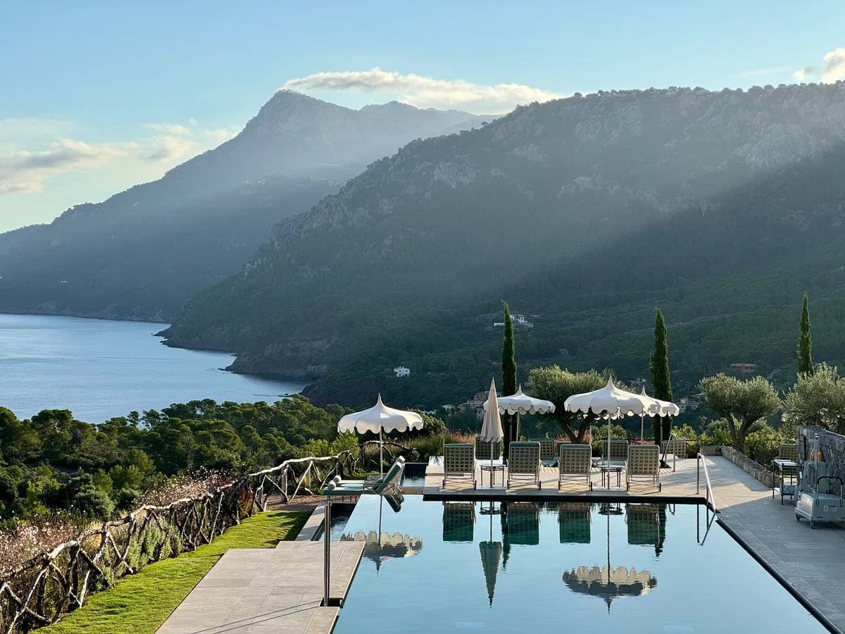 The setting is both dramatic and serene — with the Tramuntana mountains rising behind and the Mediterranean stretching endlessly ahead. Arriving by helicopter enhances the sense of exclusivity, making the experience feel cinematic and deeply personal.