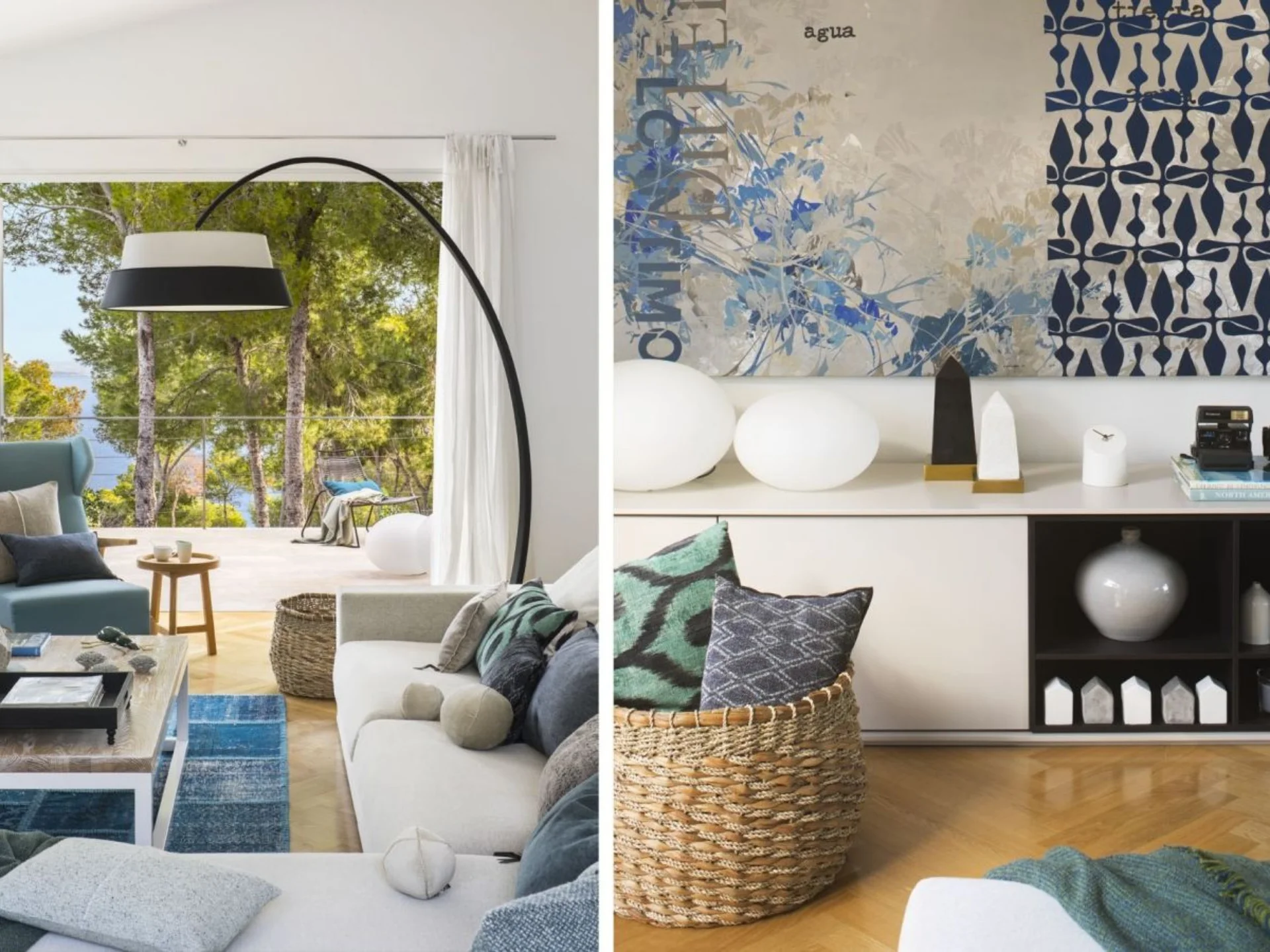Designed with clean architectural lines and a fresh, modern aesthetic, the villa embraces natural light and open space. Full-height windows frame the sea from the main living areas, creating a seamless connection between indoors and the Mediterranean beyond. Crisp white tones, refined finishes, and understated furnishings give the interiors a calm, sophisticated atmosphere. The open-plan living room flows into a generous dining area and a fully equipped contemporary kitchen with a sleek breakfast bar and premium appliances. Comfortable seating, satellite TV, and Wi-Fi ensure both relaxation and connectivity throughout your stay.