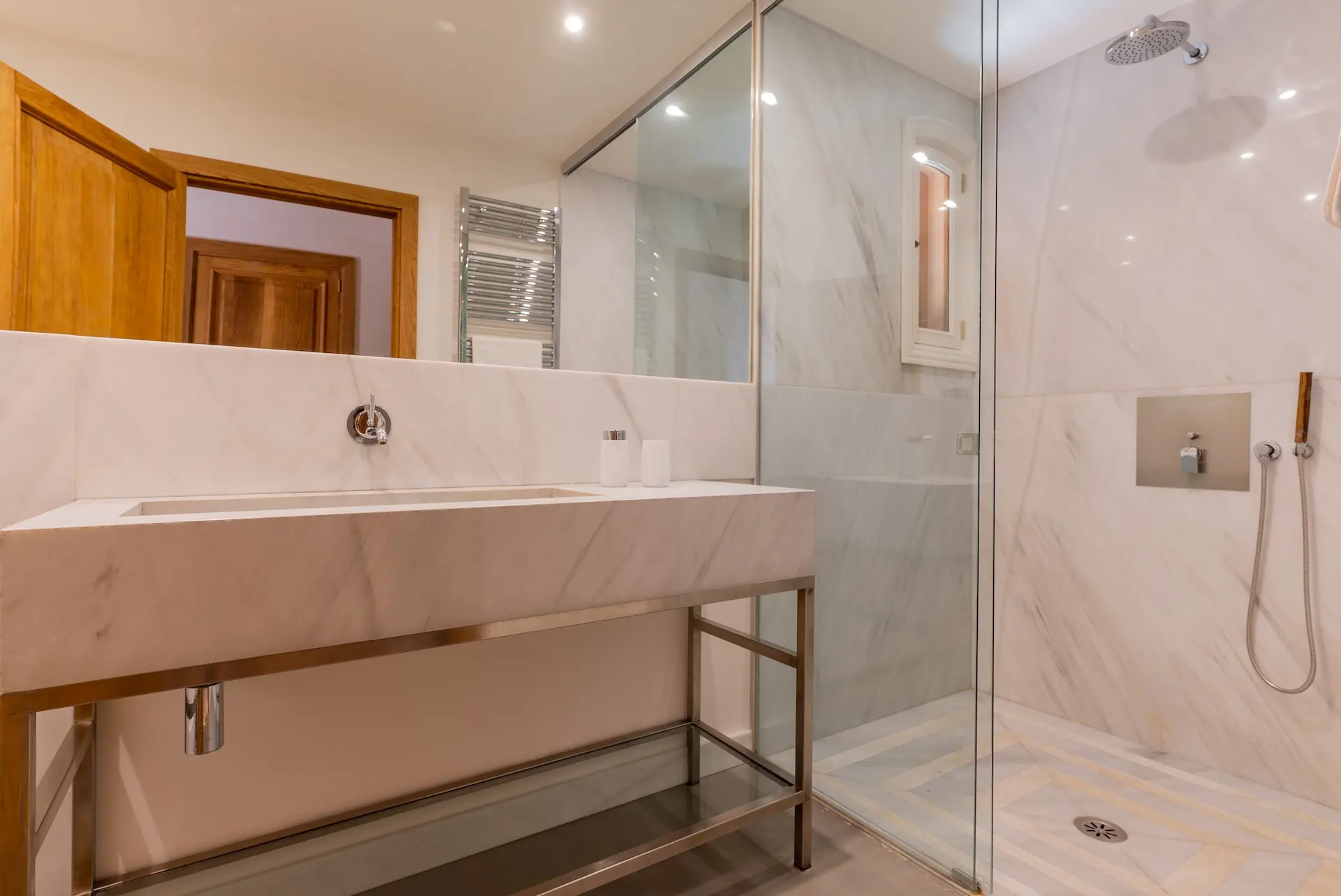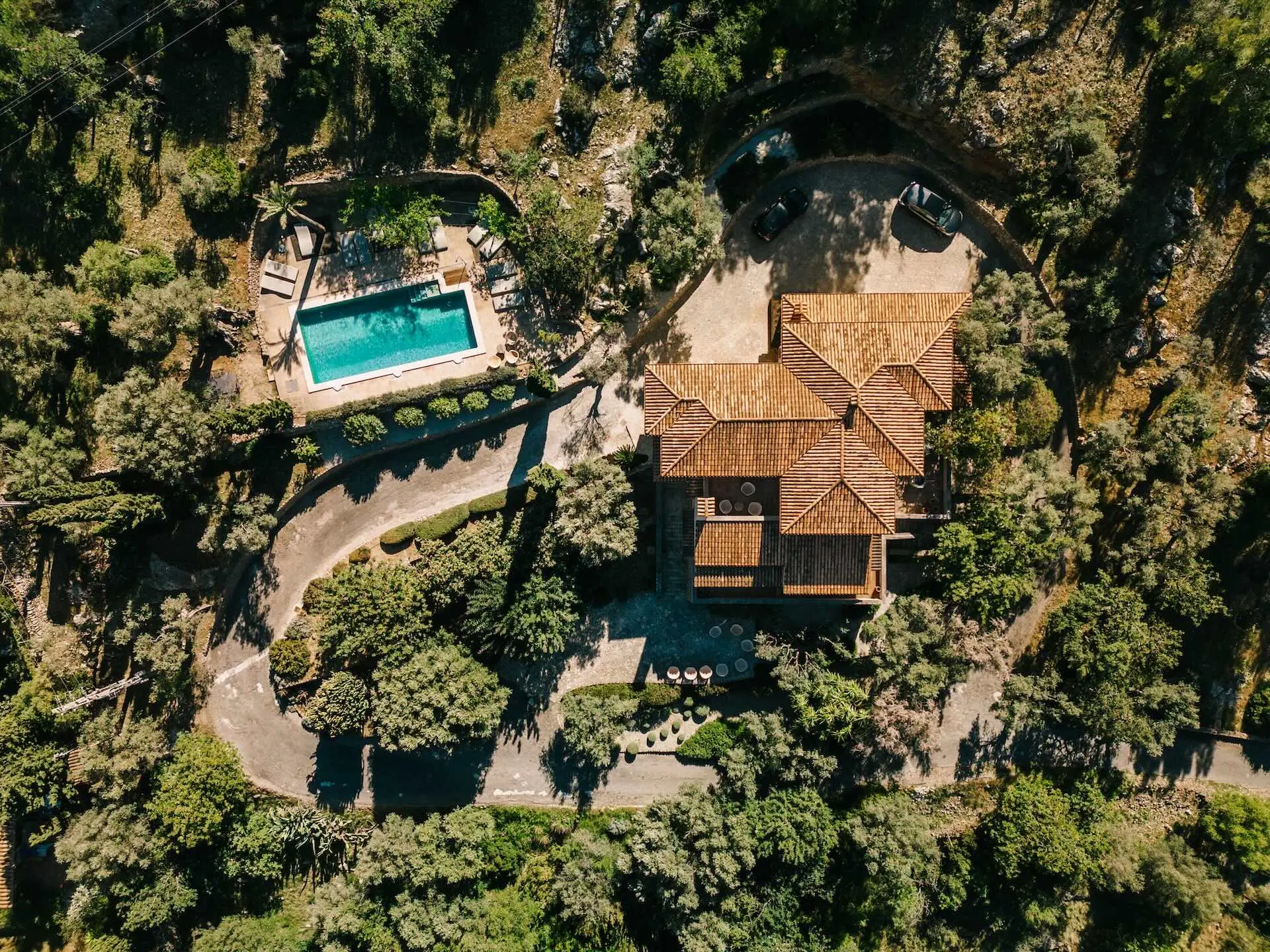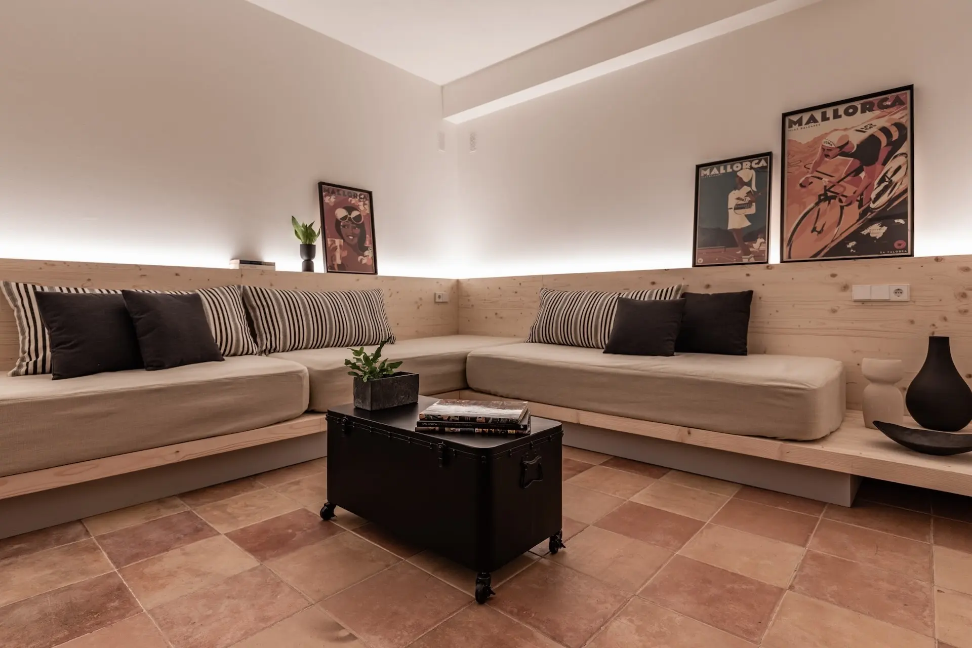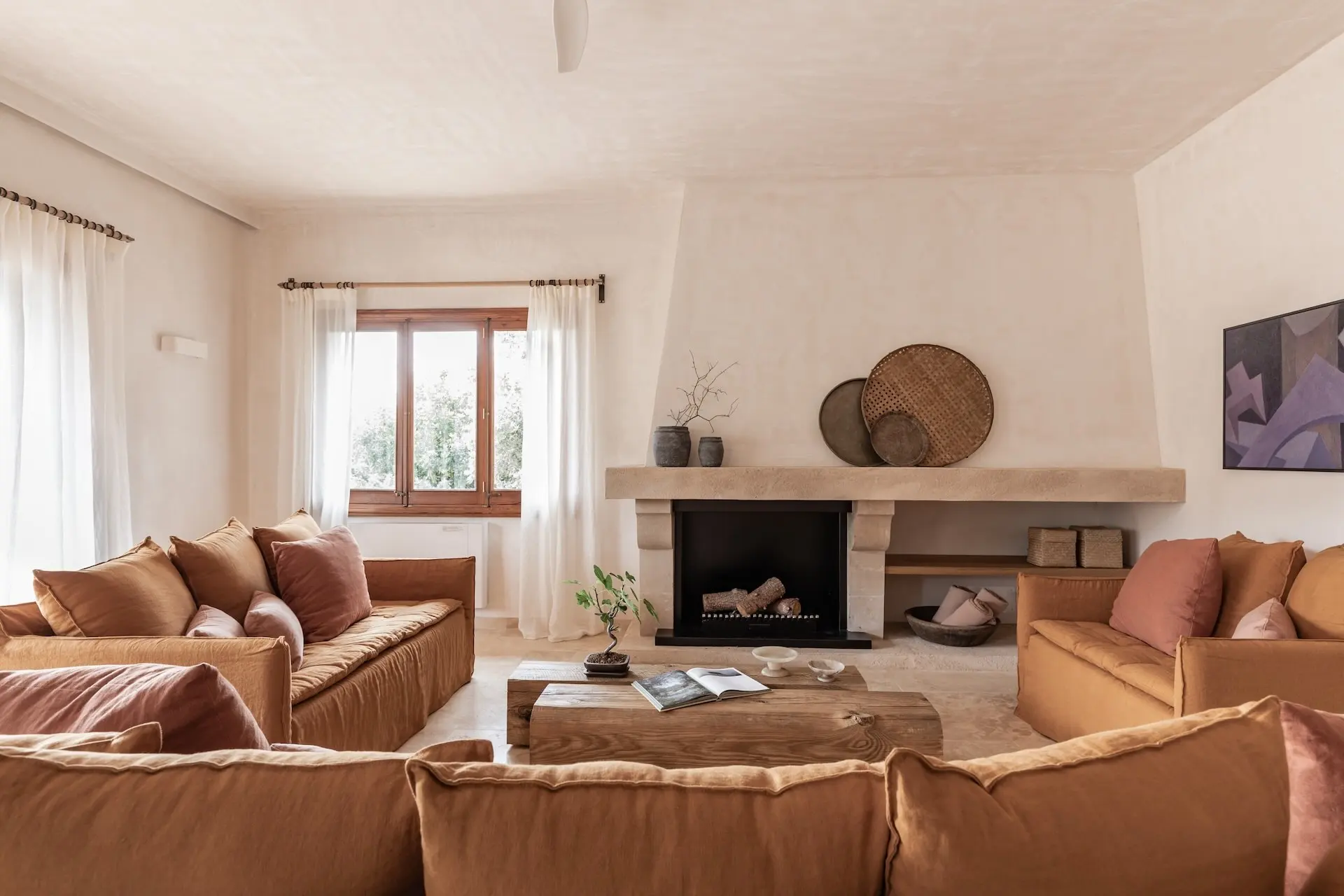 Outdoor living is at the heart of the Son Borrás experience. A 13 × 5 metre private swimming pool sits beside a spacious sun terrace, while several outdoor seating and dining areas invite long Mediterranean afternoons and evenings under the stars. The surrounding gardens are filled with lavender, bougainvillea, olive trees, and cypress, creating a fragrant and colourful landscape.