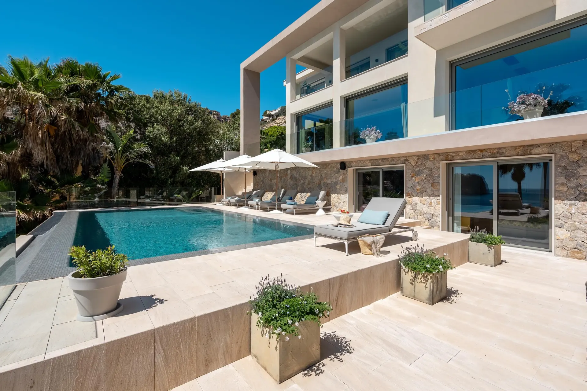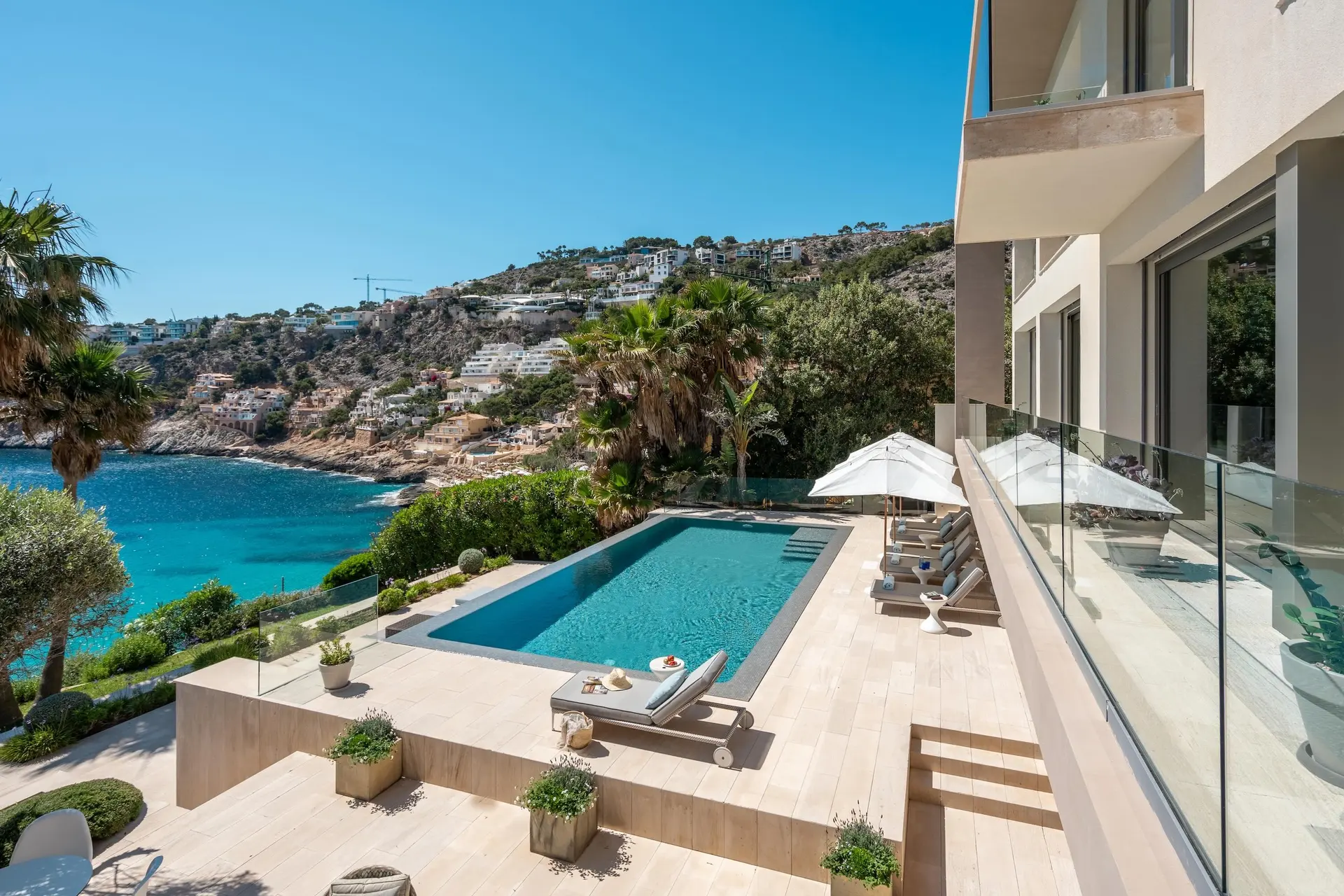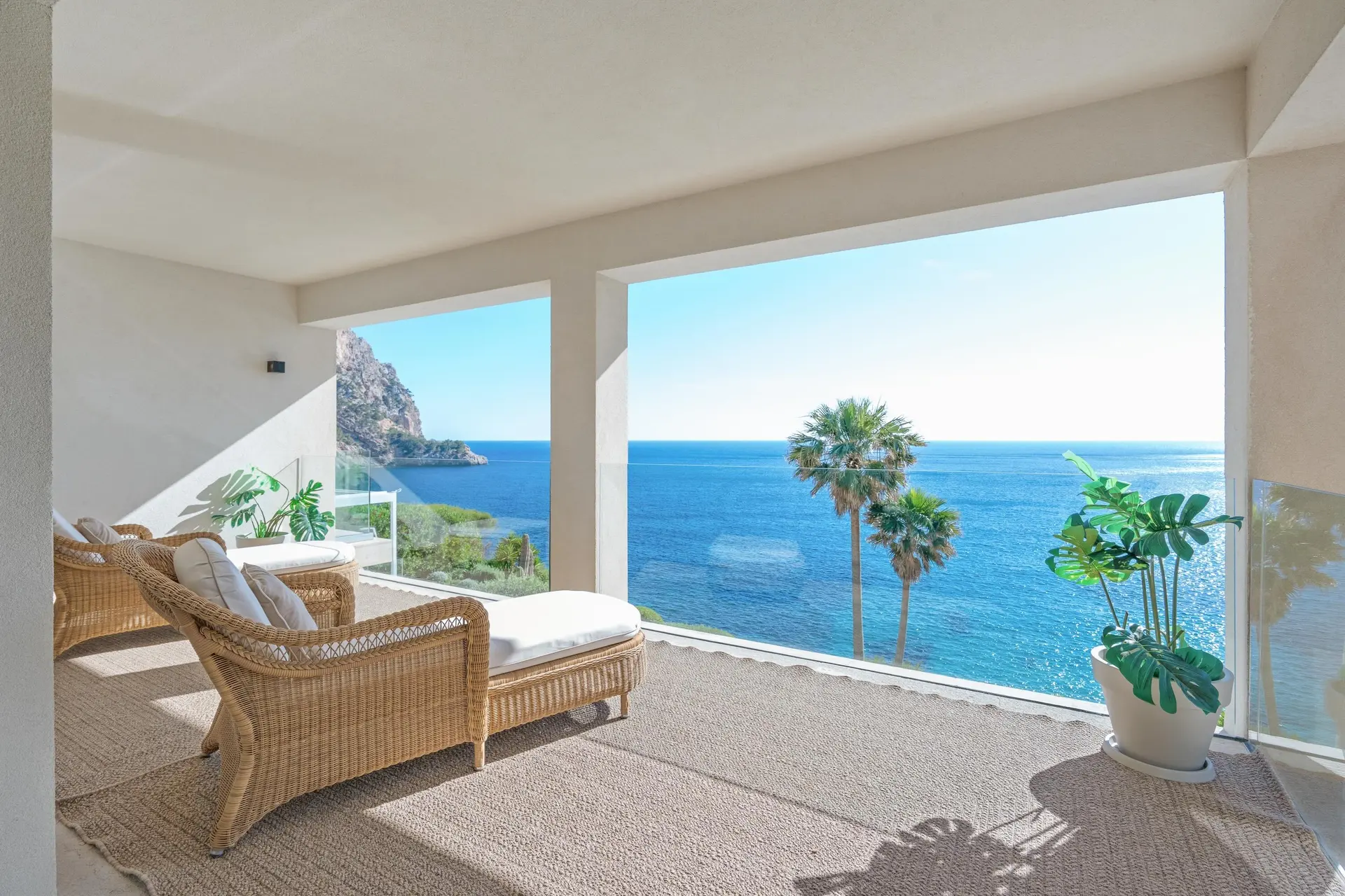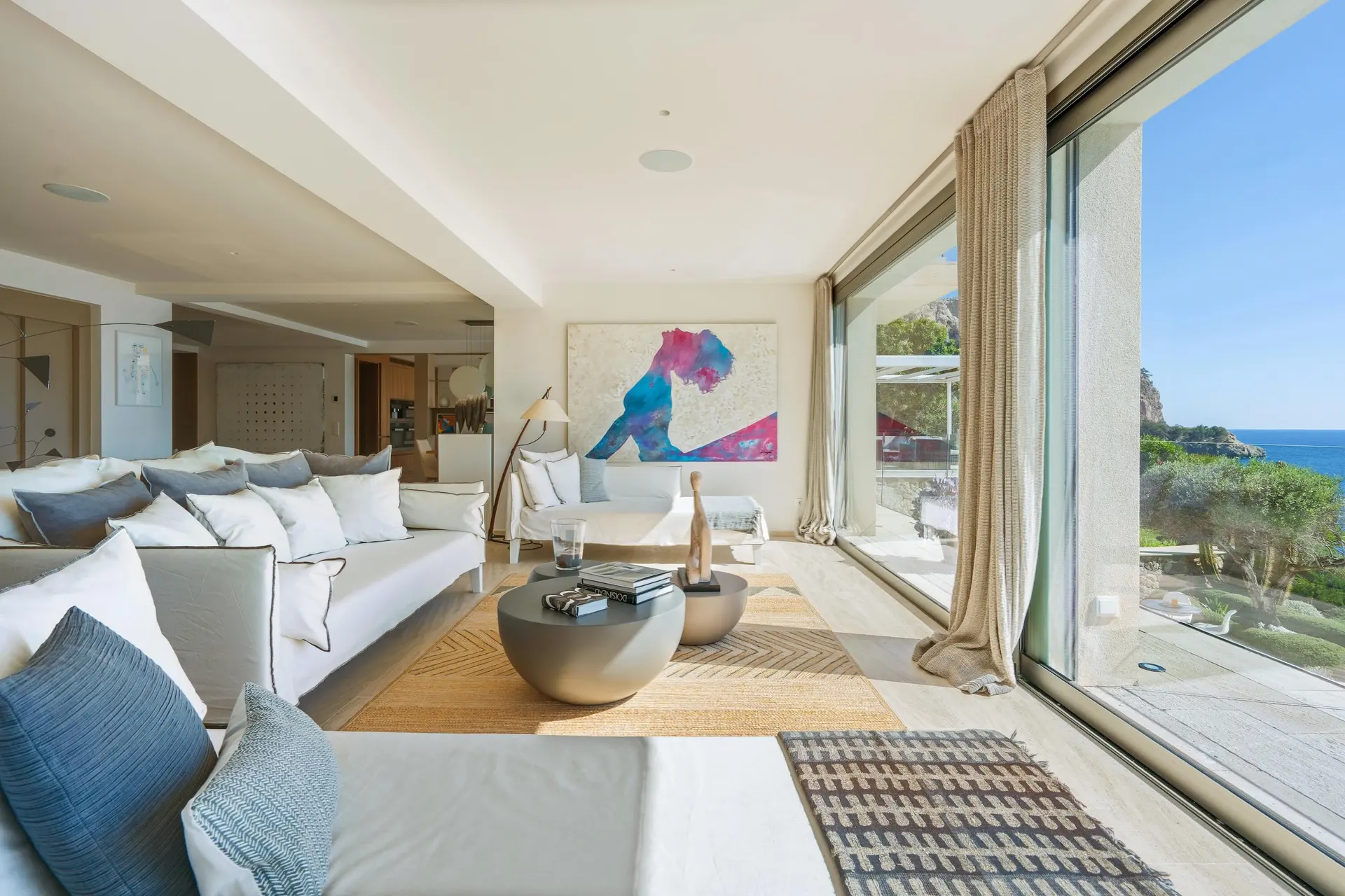 Can Luz is an elegant waterfront residence located in Cala Llamp, one of the most exclusive coves in Port d’Andratx, renowned for its dramatic rocky shoreline and turquoise Mediterranean waters. Bathed in sunlight and designed to capture the surrounding scenery, this luxury seafront villa combines privacy, comfort, and breathtaking views from nearly every room, creating an exceptional retreat in southwest Mallorca.