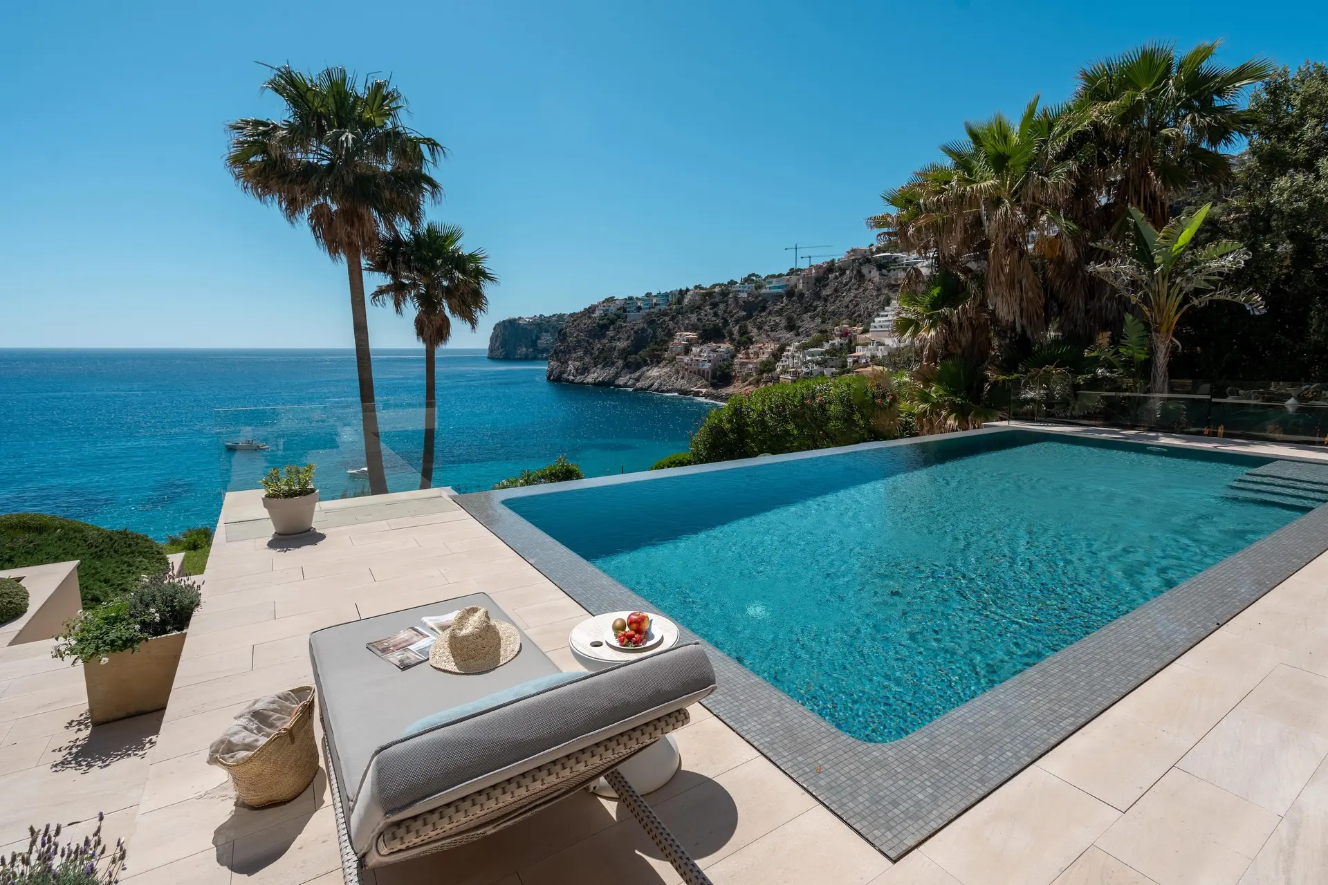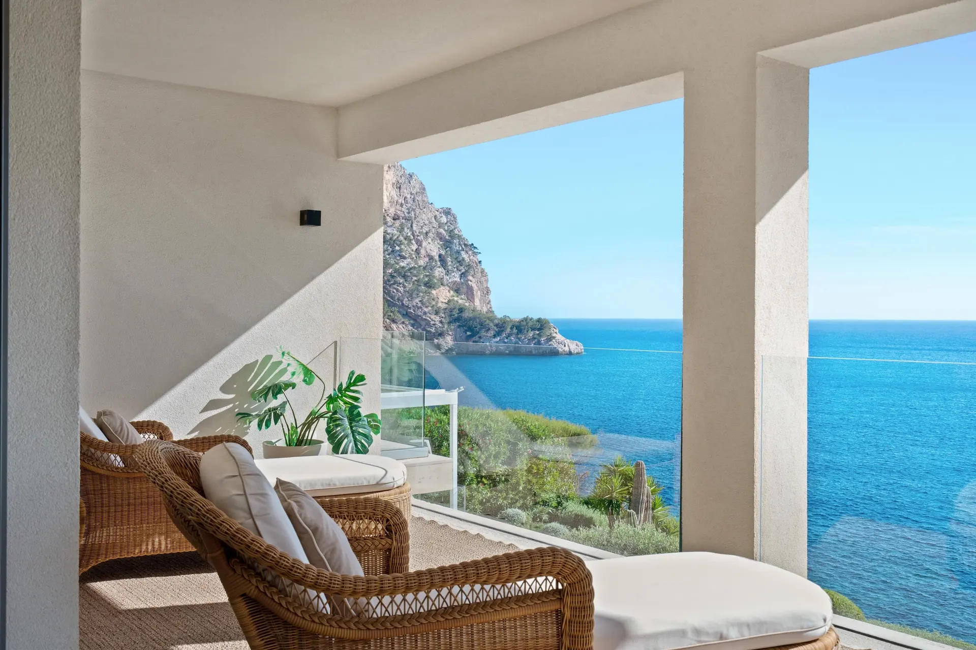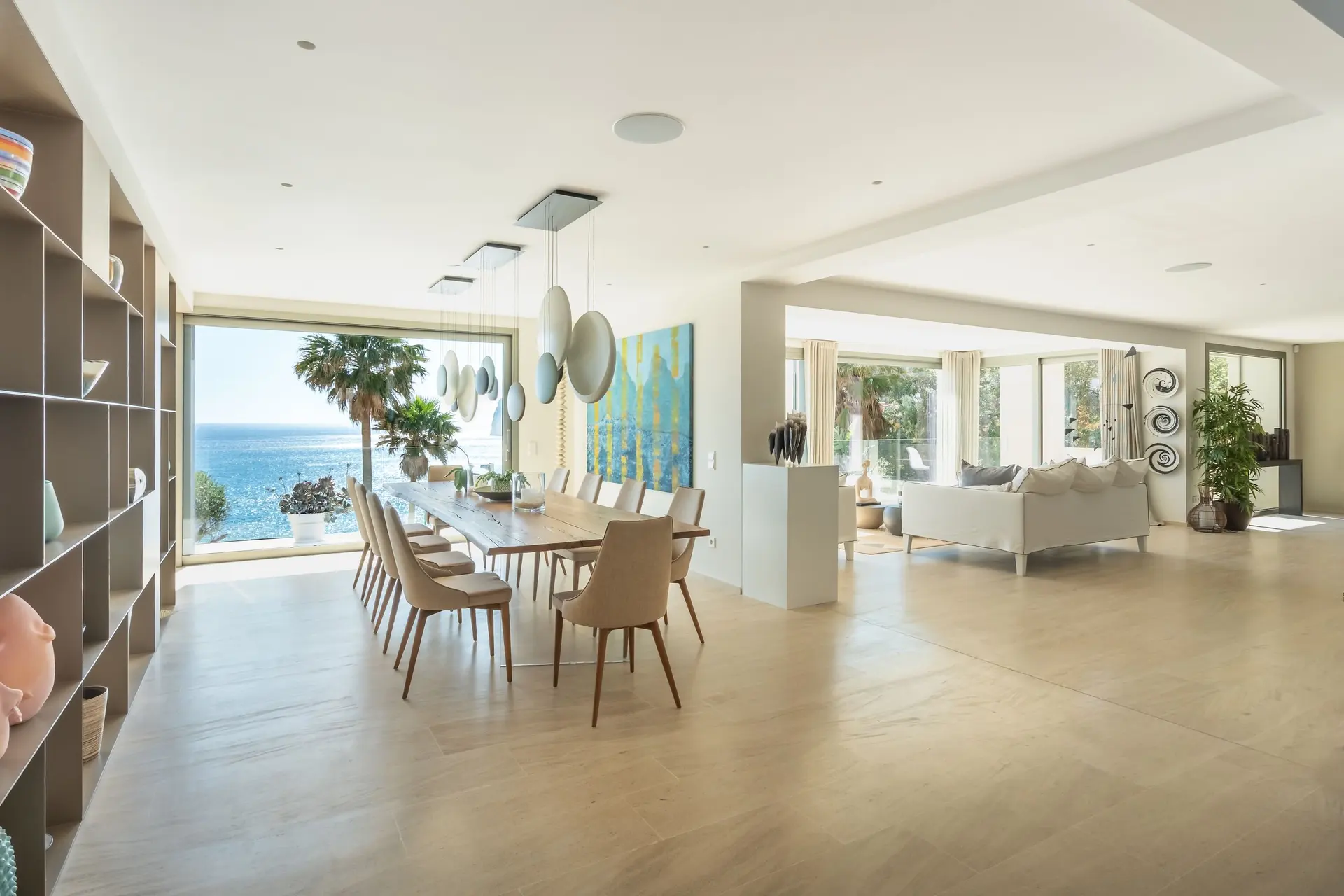 Can Luz is an elegant waterfront residence located in Cala Llamp, one of the most exclusive coves in Port d’Andratx, renowned for its dramatic rocky shoreline and turquoise Mediterranean waters. Bathed in sunlight and designed to capture the surrounding scenery, this luxury seafront villa combines privacy, comfort, and breathtaking views from nearly every room, creating an exceptional retreat in southwest Mallorca.