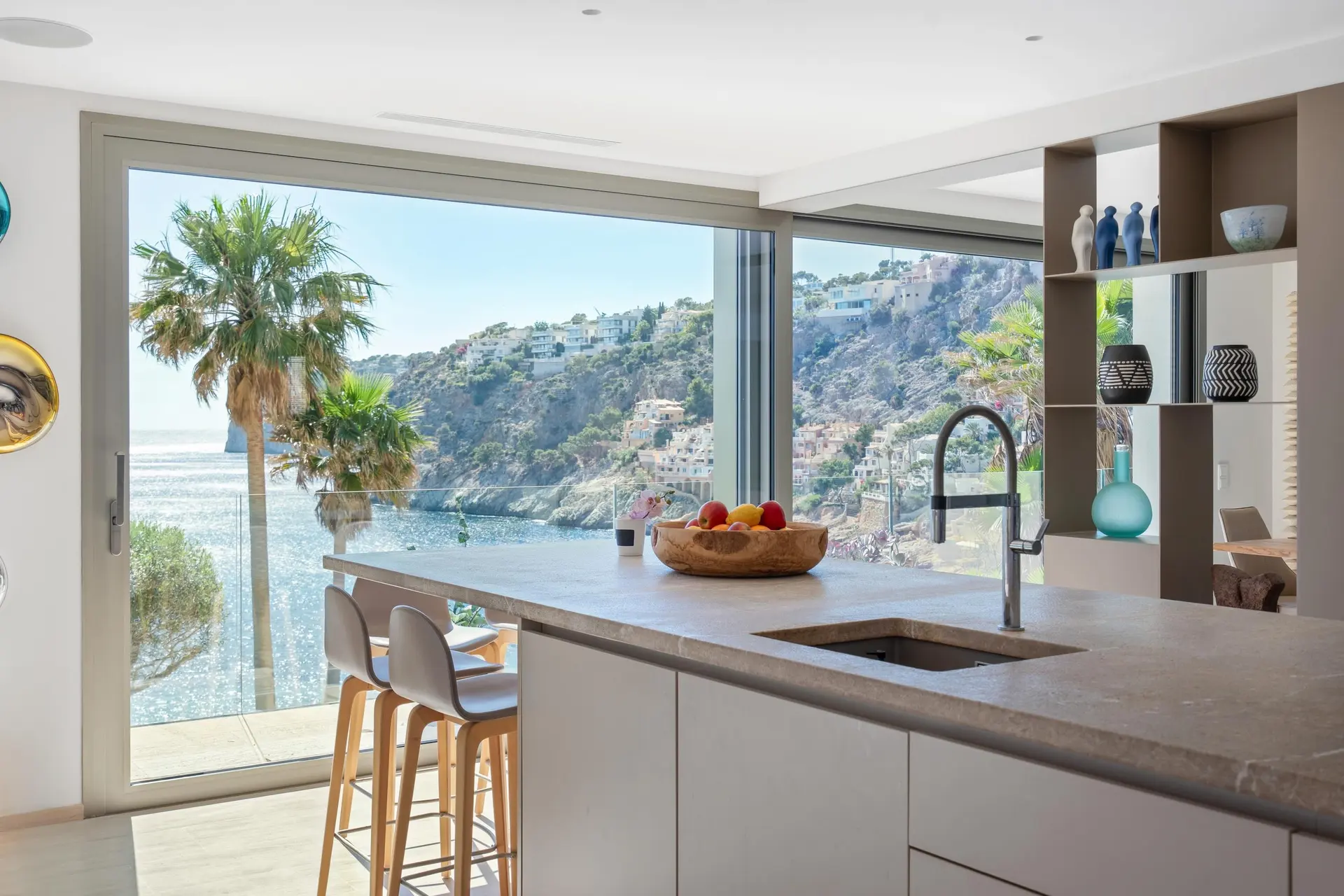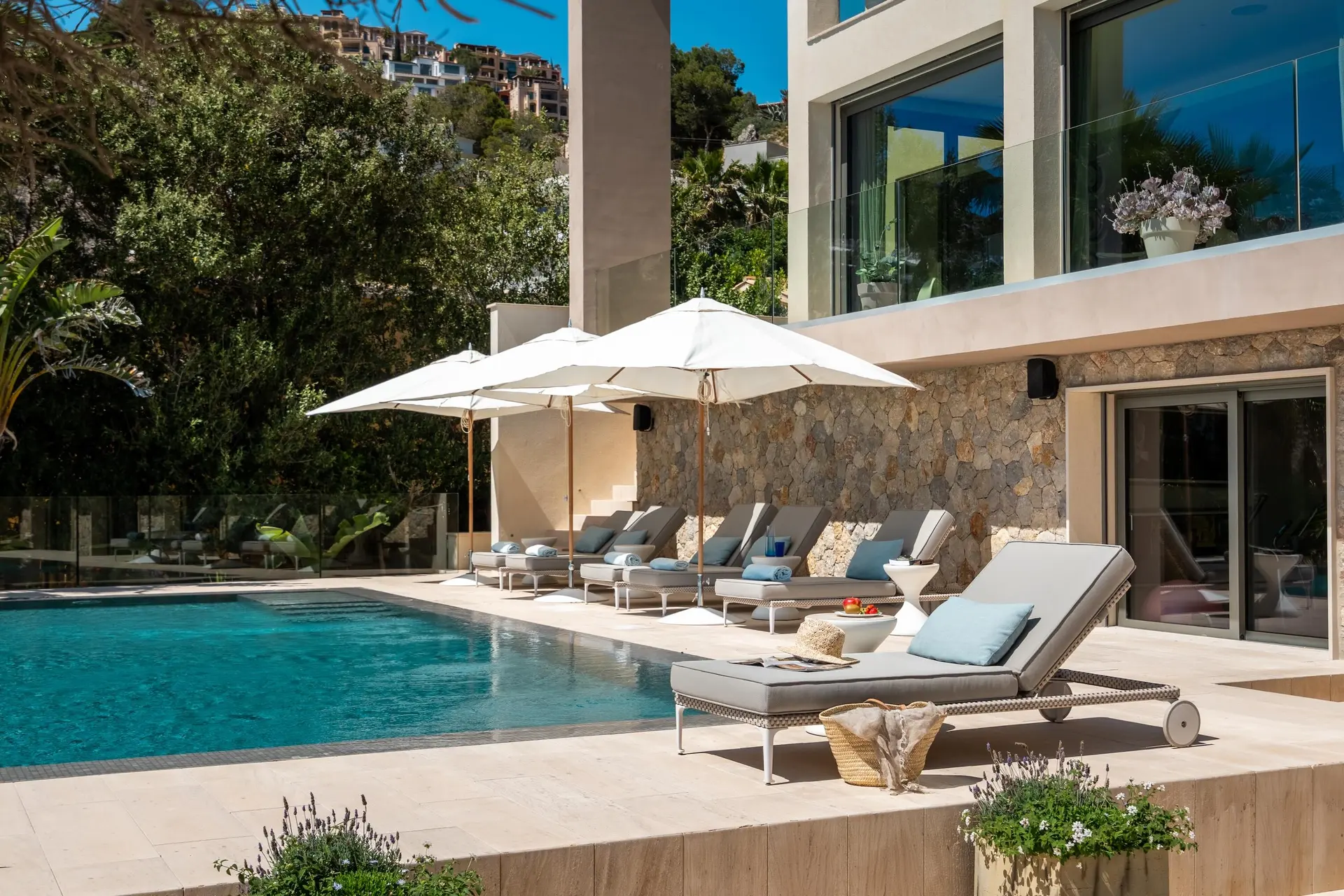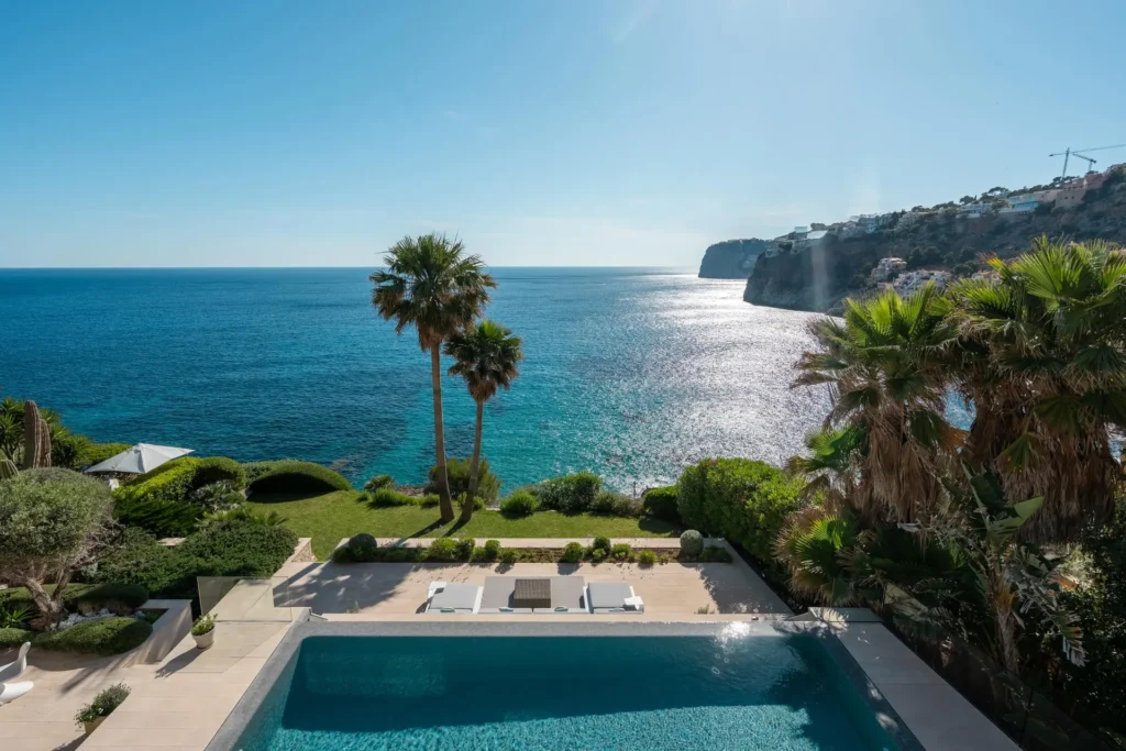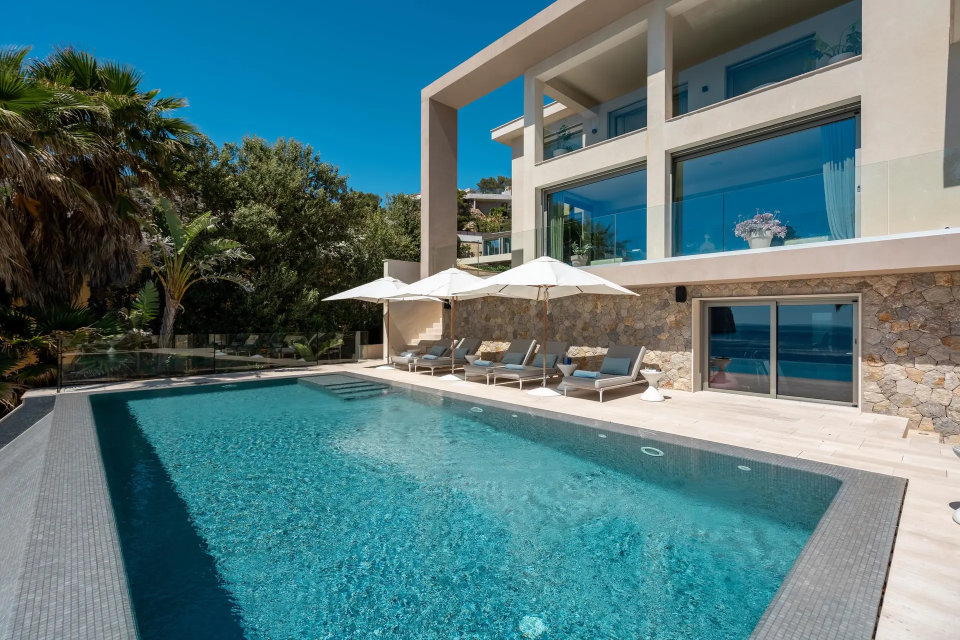 Can Luz is an elegant waterfront residence located in Cala Llamp, one of the most exclusive coves in Port d’Andratx, renowned for its dramatic rocky shoreline and turquoise Mediterranean waters. Bathed in sunlight and designed to capture the surrounding scenery, this luxury seafront villa combines privacy, comfort, and breathtaking views from nearly every room, creating an exceptional retreat in southwest Mallorca.