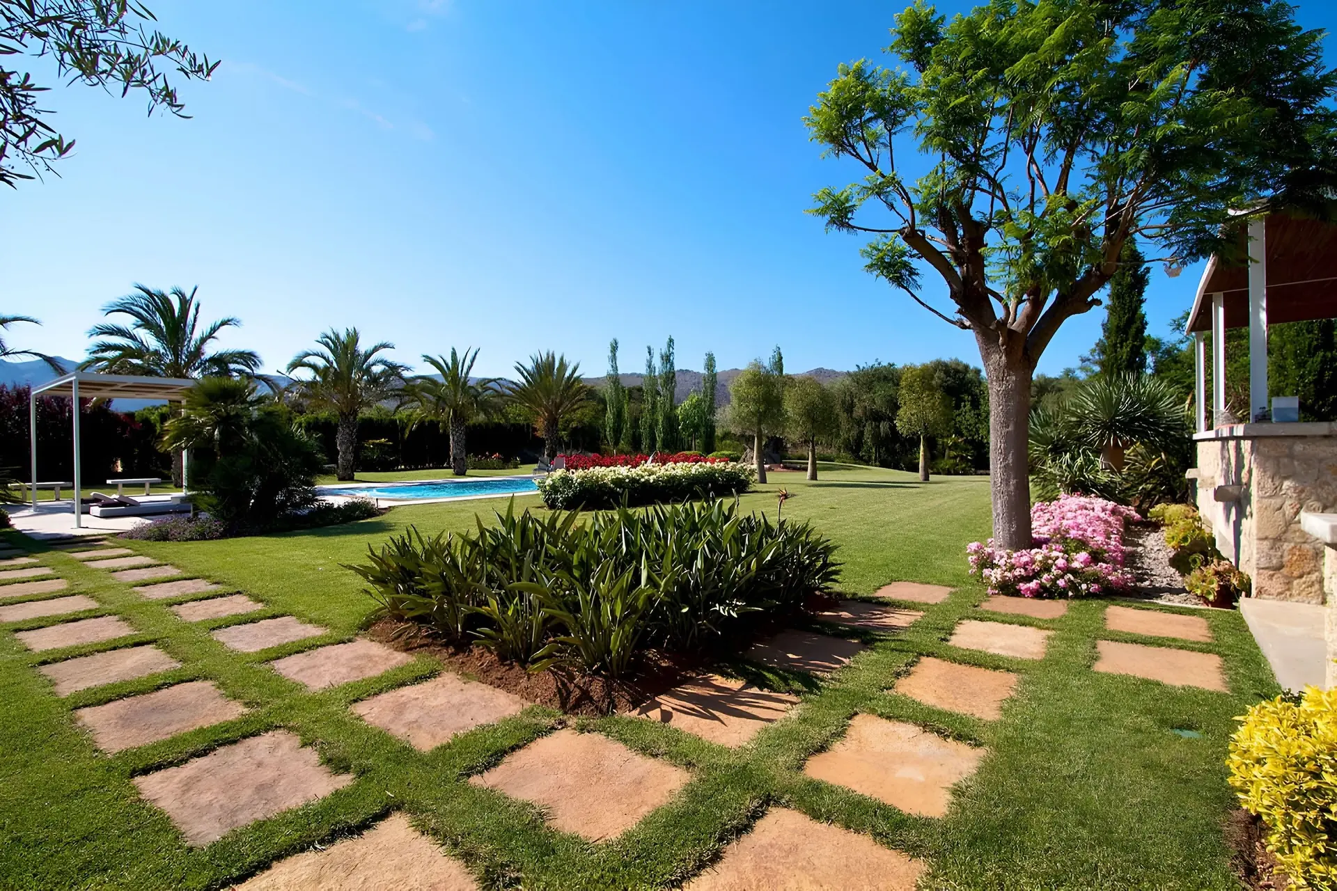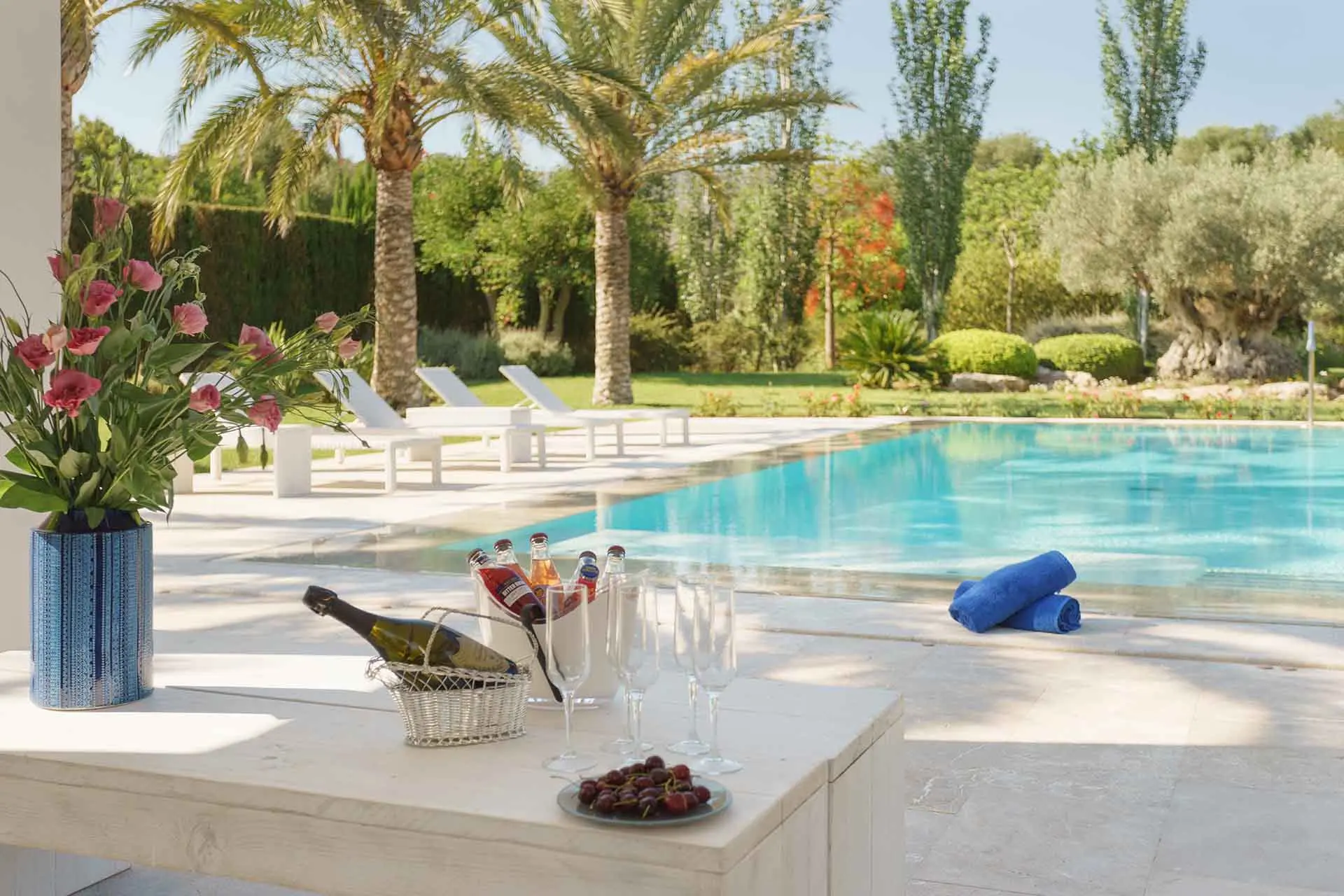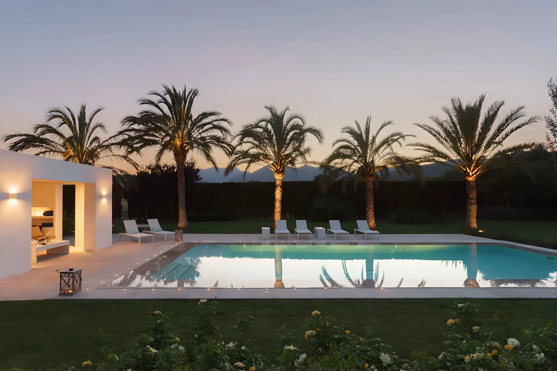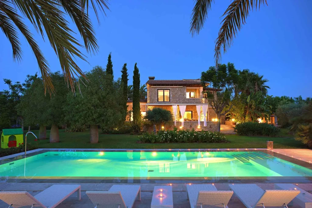 Set in the lush countryside between Pollença and Port de Pollença, Can Pou is a beautifully designed finca that perfectly combines traditional Mallorcan charm with modern comfort. The villa enjoys a privileged position within generous grounds filled with palm trees, lavender, and native plants that create a peaceful natural setting.