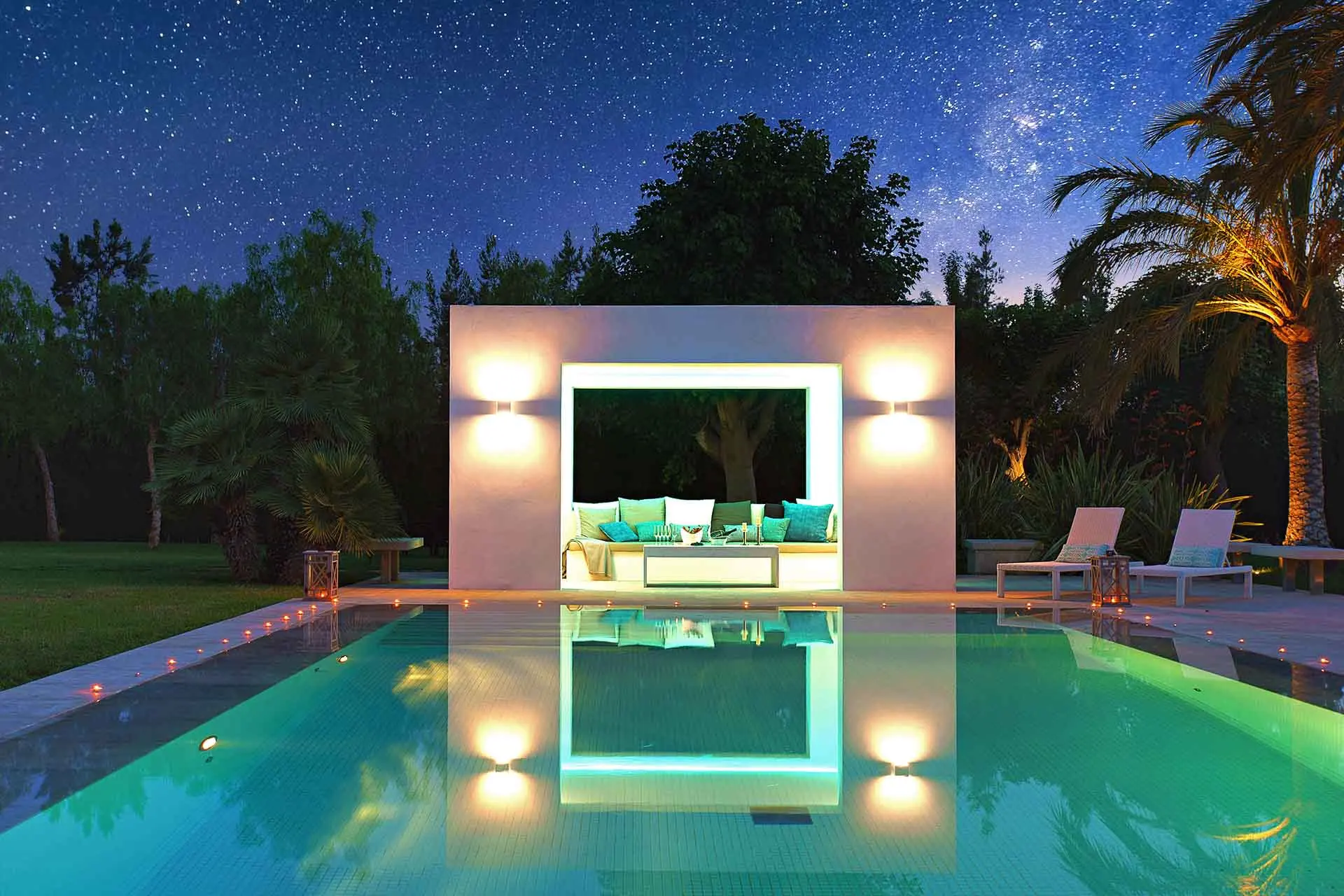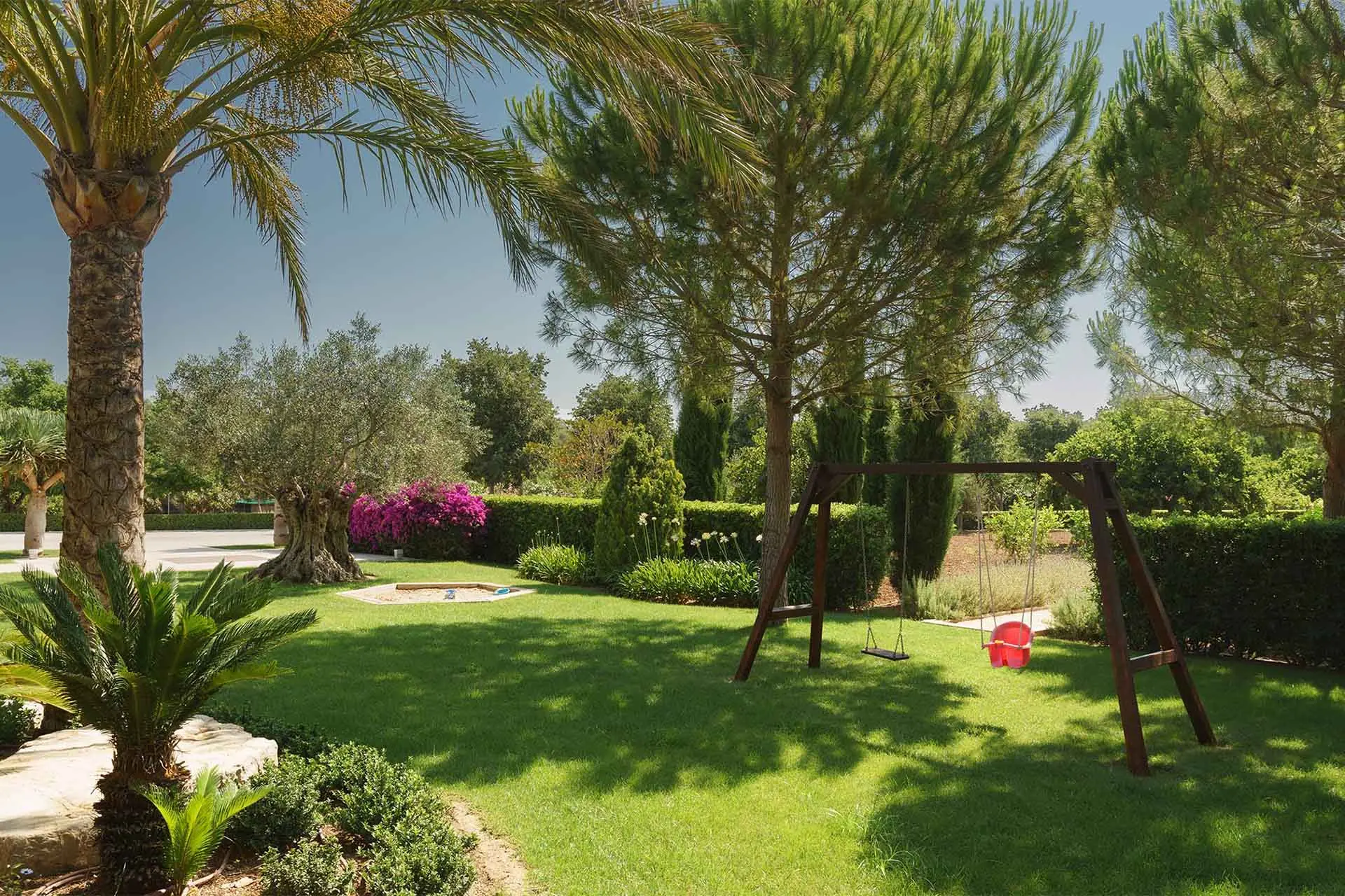 Several covered terraces and a dedicated barbecue area provide perfect settings for outdoor dining and evenings under the stars. The 12-metre swimming pool, which can be heated on request, is surrounded by terraces and secured with fencing (on request), creating a safe and relaxing environment for all ages.