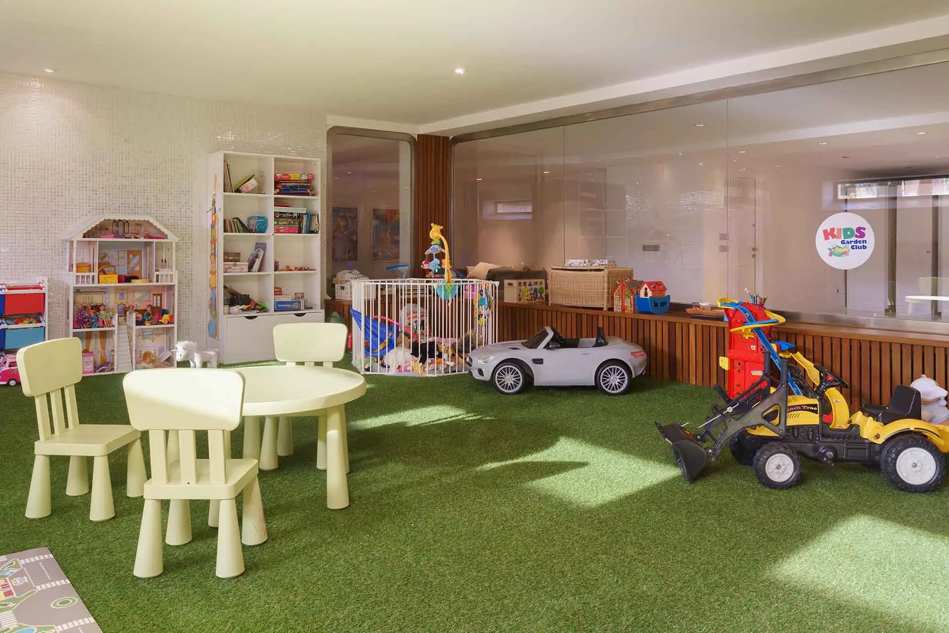 Designed with families in mind, the villa also features an impressive playroom located on the lower level, providing entertainment for children while adults enjoy the outdoor spaces.