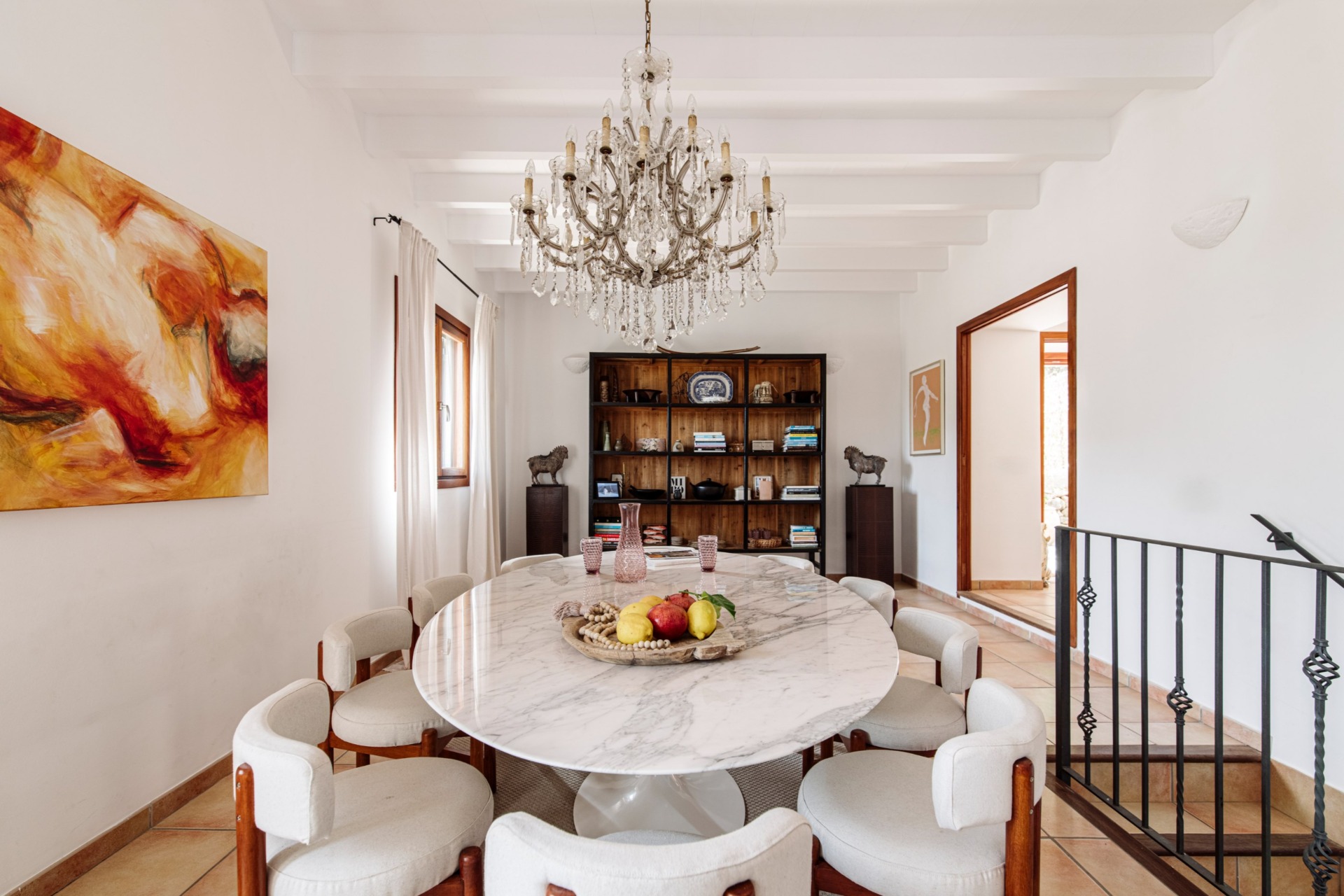 Inside, the property blends comfort with artistic flair. Carefully selected sculptures and collector pieces decorate the interiors, giving the home a distinctive atmosphere full of warmth and personality. The villa features four comfortable bedrooms and three well-appointed bathrooms, providing plenty of space for families or groups. A fully equipped kitchen and inviting living areas create a relaxed environment for gathering and enjoying time together.