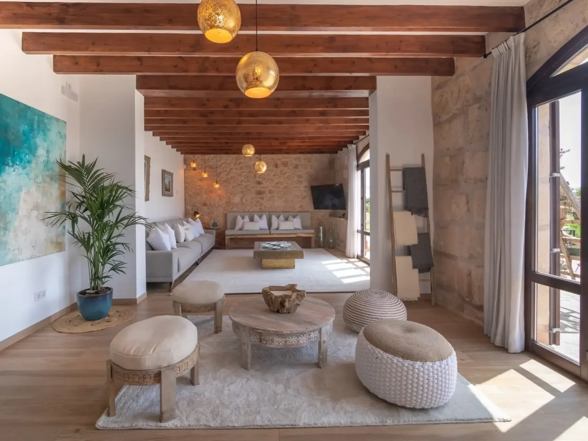 Located in the charming village of Santa Maria del Camí, Villa Cas Metge Matas is an elegant 19th-century manor house that beautifully combines historic character with modern comfort. Recently restored with great care, the property preserves its traditional Mallorcan architecture while offering contemporary luxury across generous interior and exterior spaces. Set within a private estate surrounded by landscaped gardens and open countryside, the villa provides a peaceful setting with views toward the mountains and the vineyards that make the region famous.