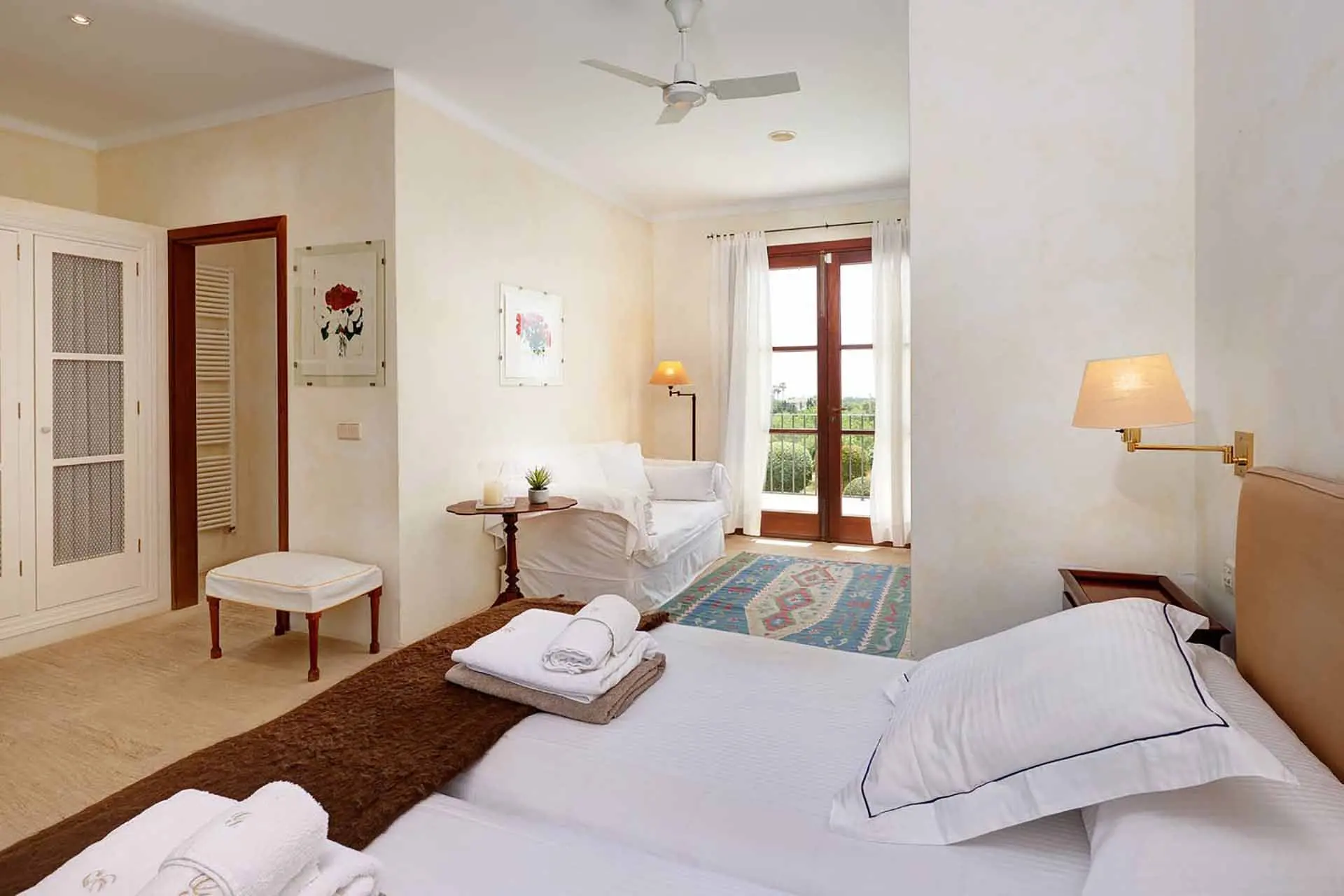 Set in the tranquil countryside near Portocolom on Mallorca’s eastern coast, Golf D’or is a beautifully renovated retreat designed for guests seeking space, privacy, and refined comfort. Recently refurbished to high luxury standards, the villa offers a peaceful rural setting surrounded by almond trees and landscaped gardens filled with Mediterranean plants, the property enjoys a serene natural environment that ensures both privacy and relaxation. The expansive grounds create a calm atmosphere where guests can enjoy sweeping views of the surrounding countryside and spectacular sunsets that colour the landscape each evening.
