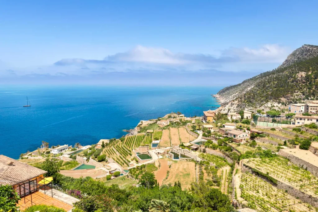 Nearby coves such as Cala Banyalbufar provide crystal-clear waters for swimming, while scenic coastal roads lead to charming villages including Valldemossa and Deià.