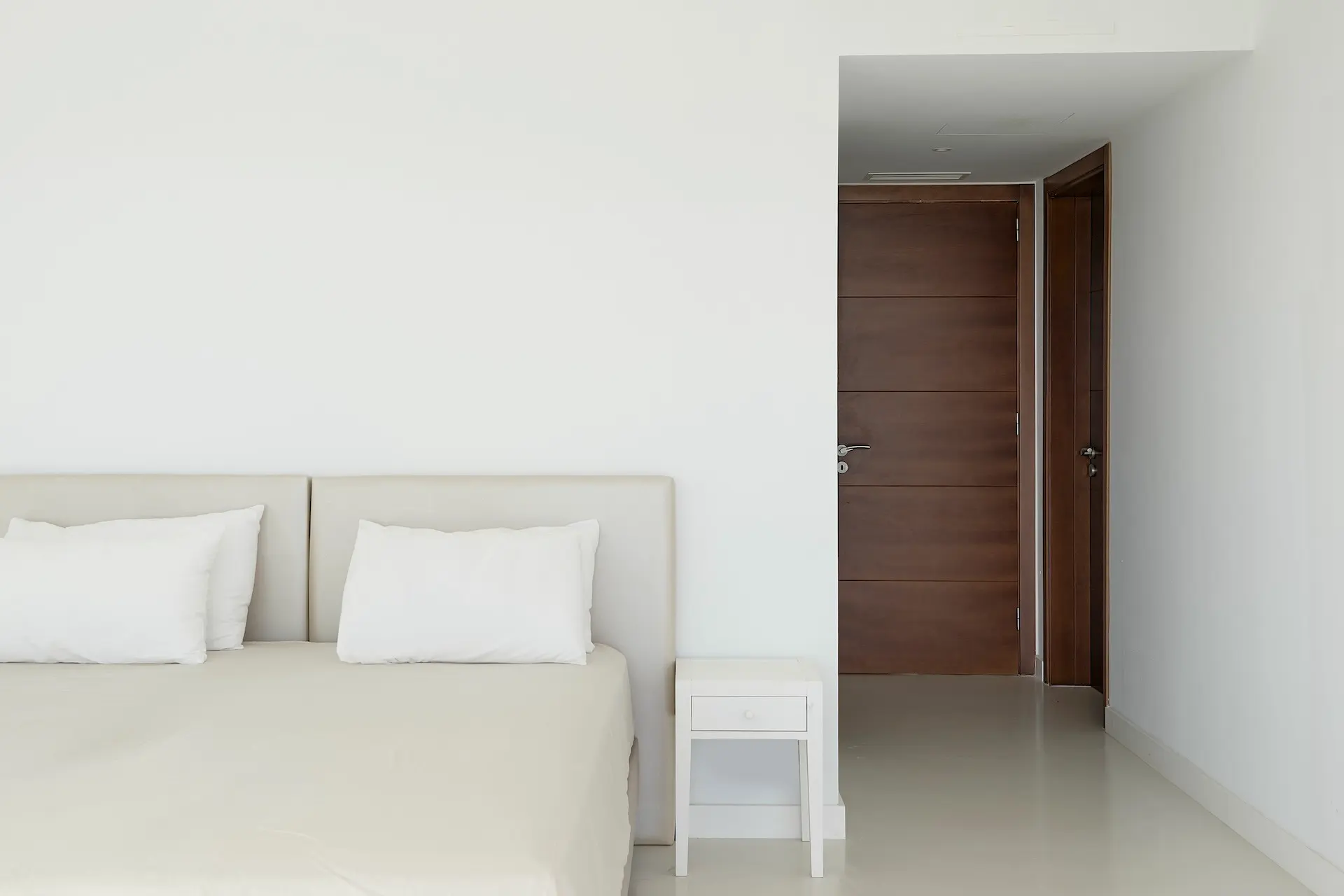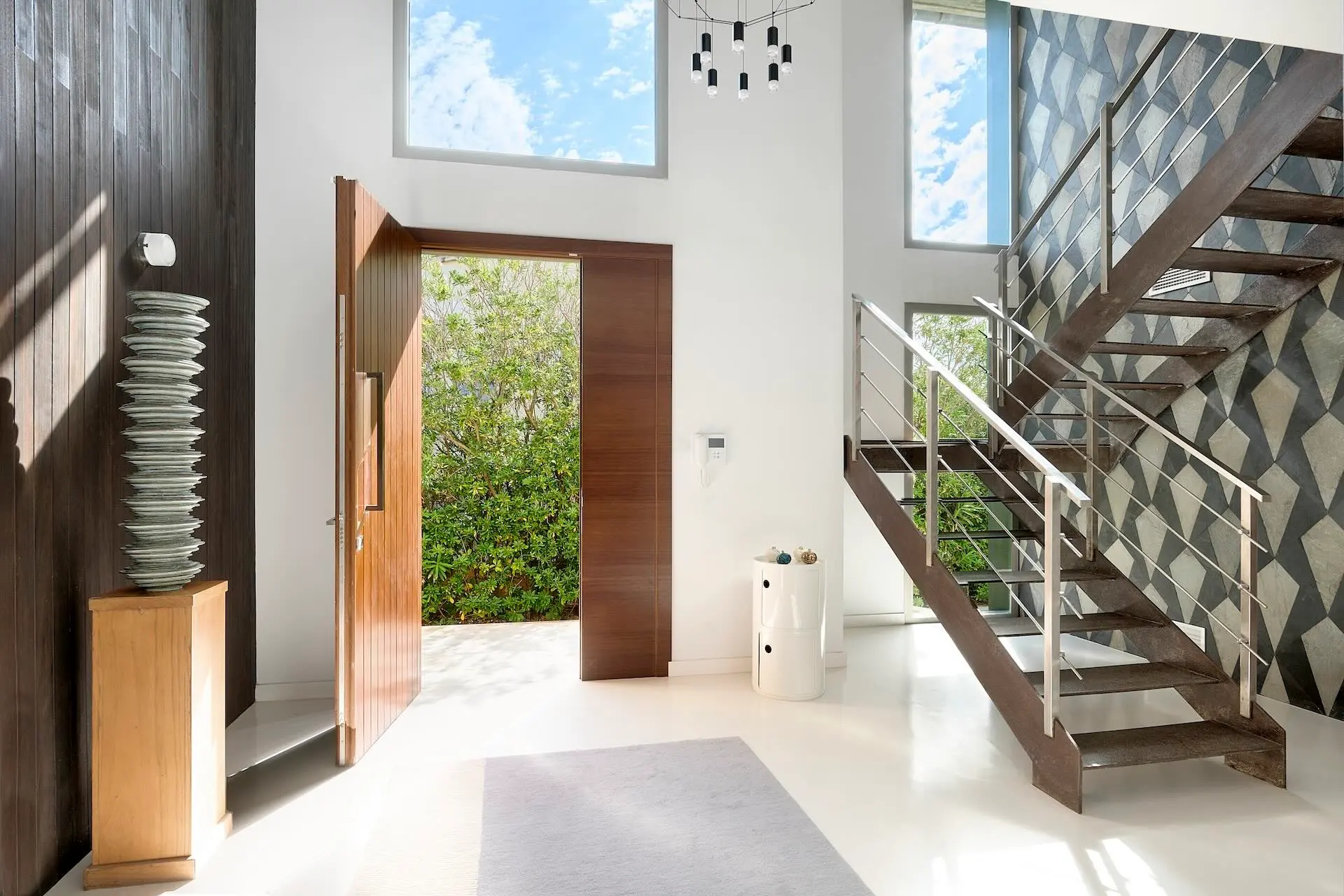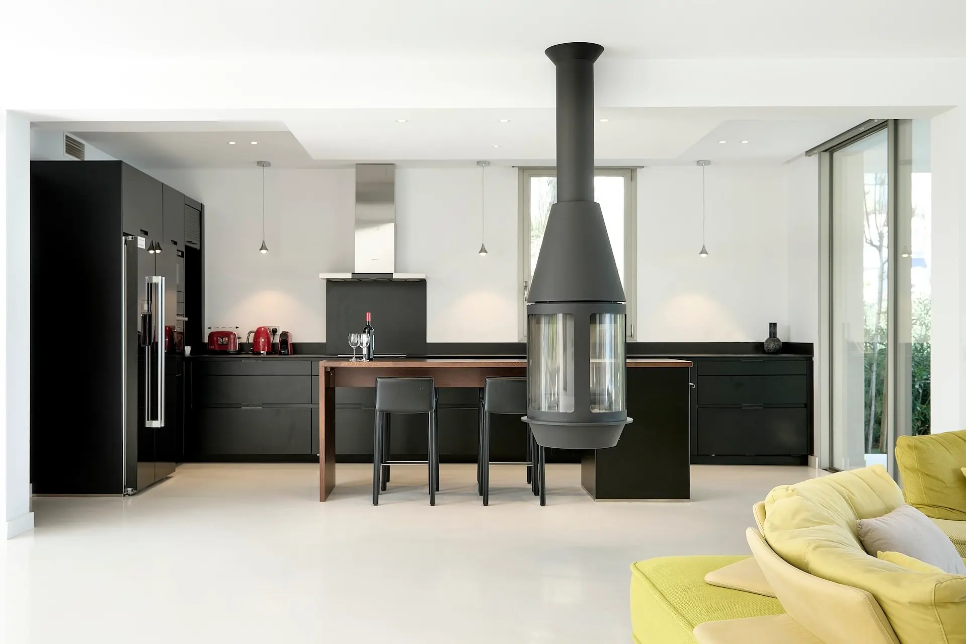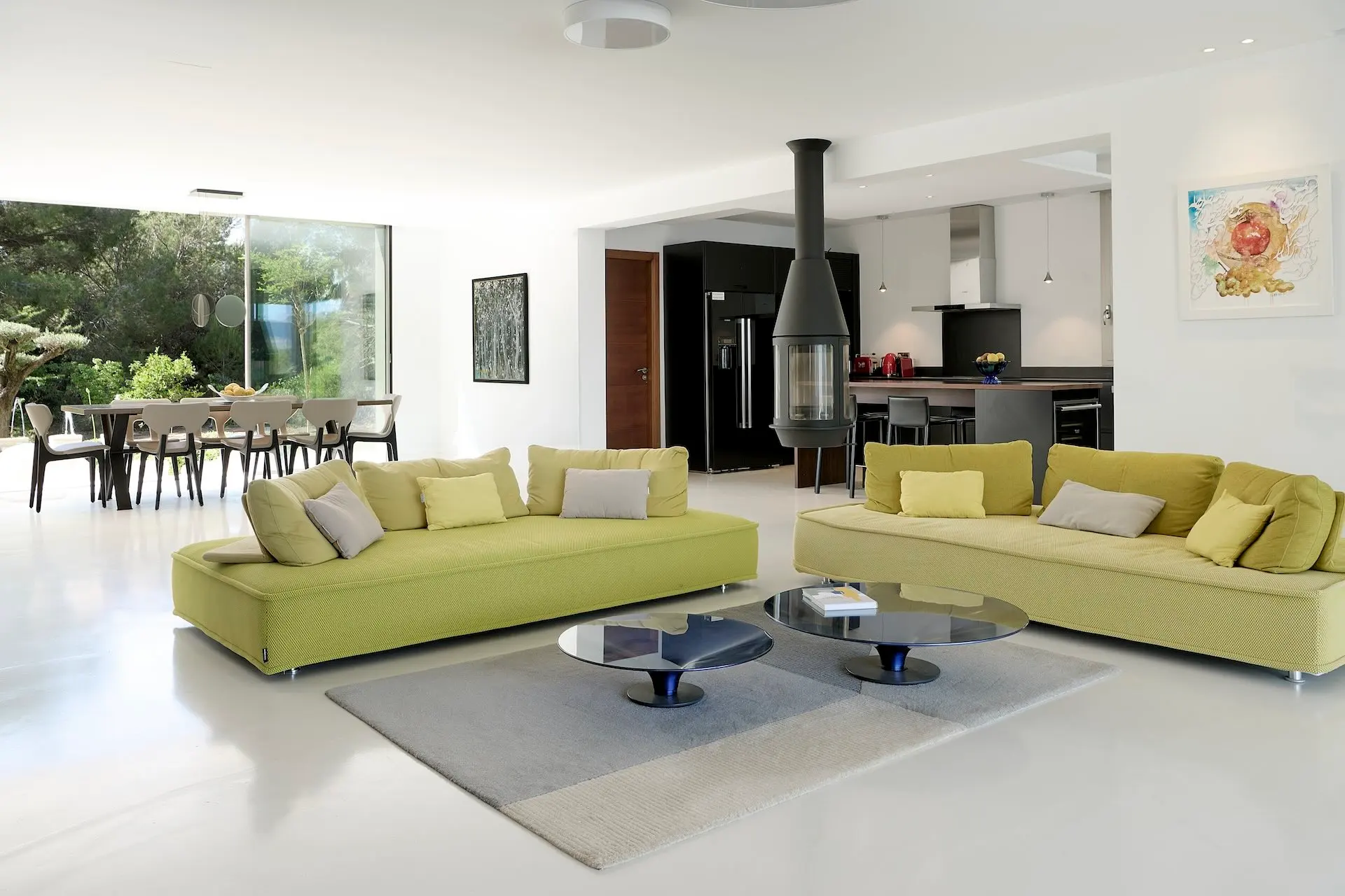 The villa’s interior is bright, modern, and designed to make the most of its spectacular sea views. Large floor-to-ceiling windows flood the open-plan living and dining spaces with natural light while seamlessly connecting the indoor areas with the terraces outside. A fully equipped contemporary kitchen provides everything needed for relaxed holiday living. The property features five comfortable bedrooms, each with its own bathroom, offering both privacy and comfort. Upstairs bedrooms open onto a large panoramic terrace overlooking the bay, while an additional flexible room on the ground floor can serve as a guest bedroom, wellness area, or quiet reading space.