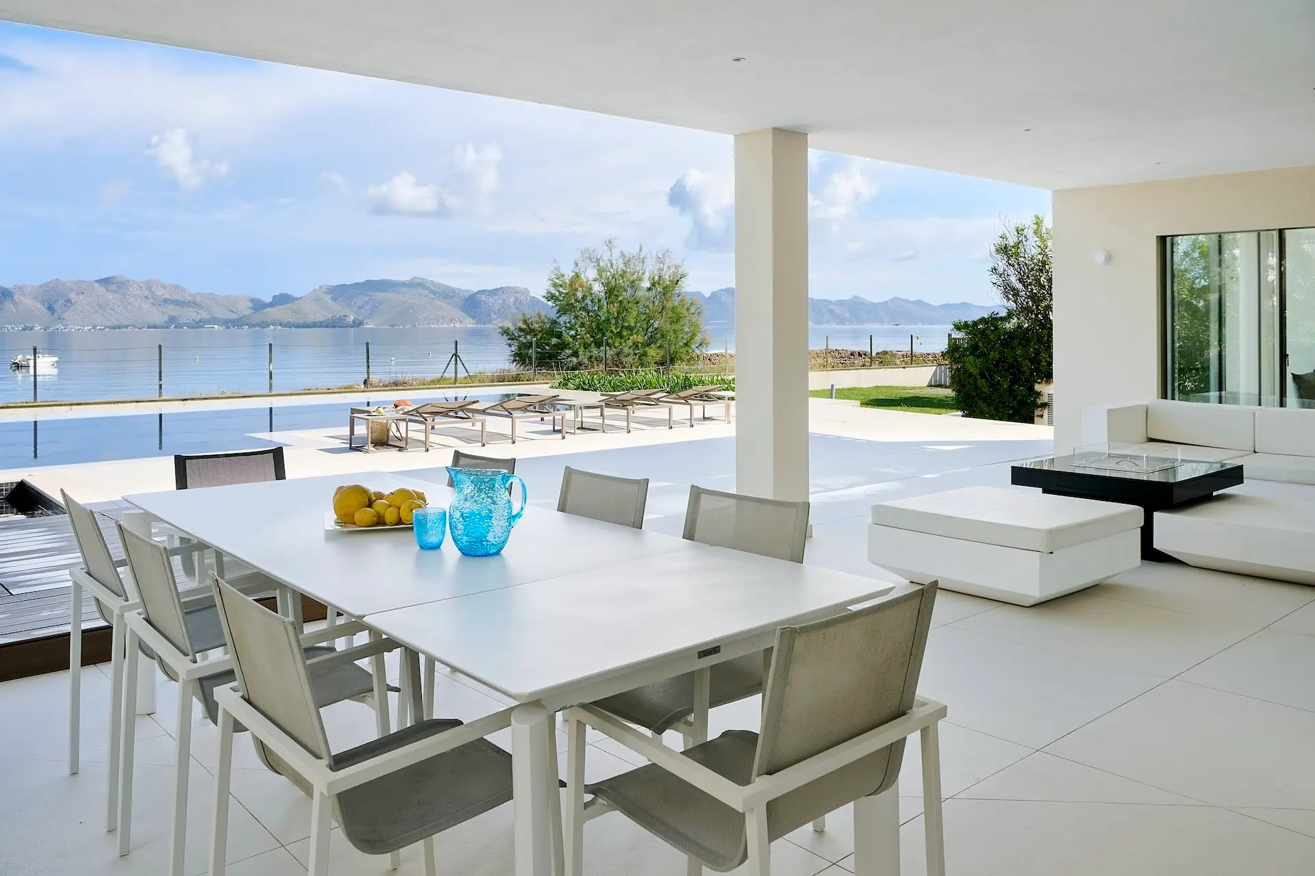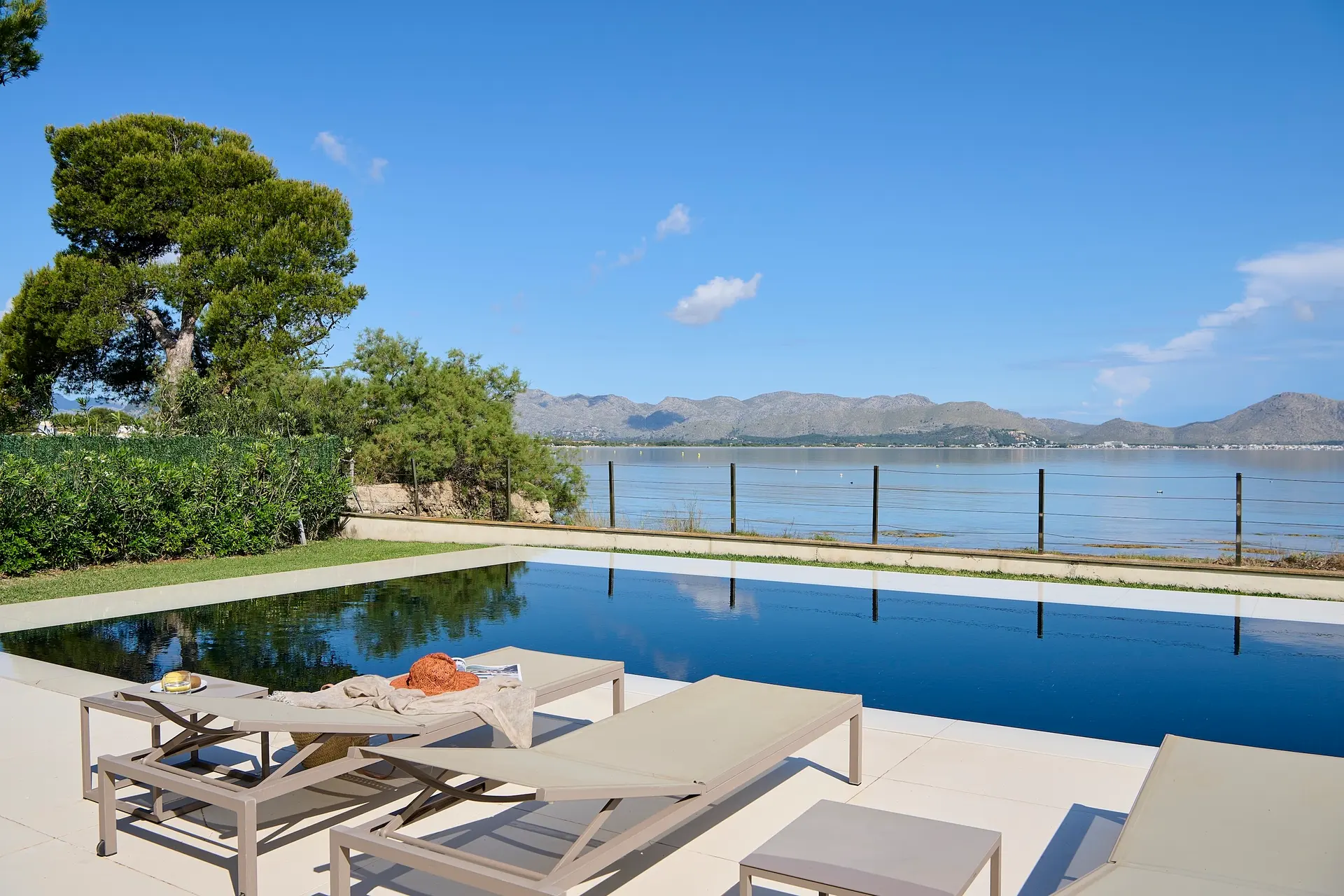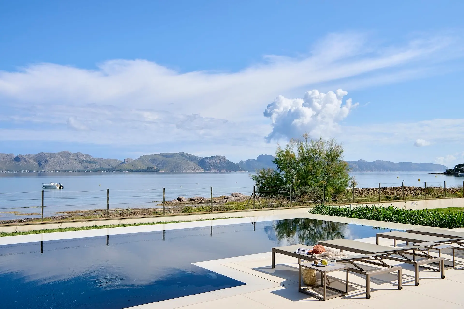 Located on the peaceful coastline of Barcarès, just minutes from the historic town of Alcúdia, this exceptional luxury villa offers an exclusive setting right by the Mediterranean. Designed to combine elegant comfort with breathtaking natural surroundings, the property enjoys uninterrupted views over the bay and direct access to the sea. The spacious terrace with infinity pool and jacuzzi creates a relaxing atmosphere where guests can unwind while taking in the coastal scenery. With space for up to 10 guests, it is an ideal holiday rental in Mallorca for families or groups seeking privacy, style, and an unbeatable seafront location.