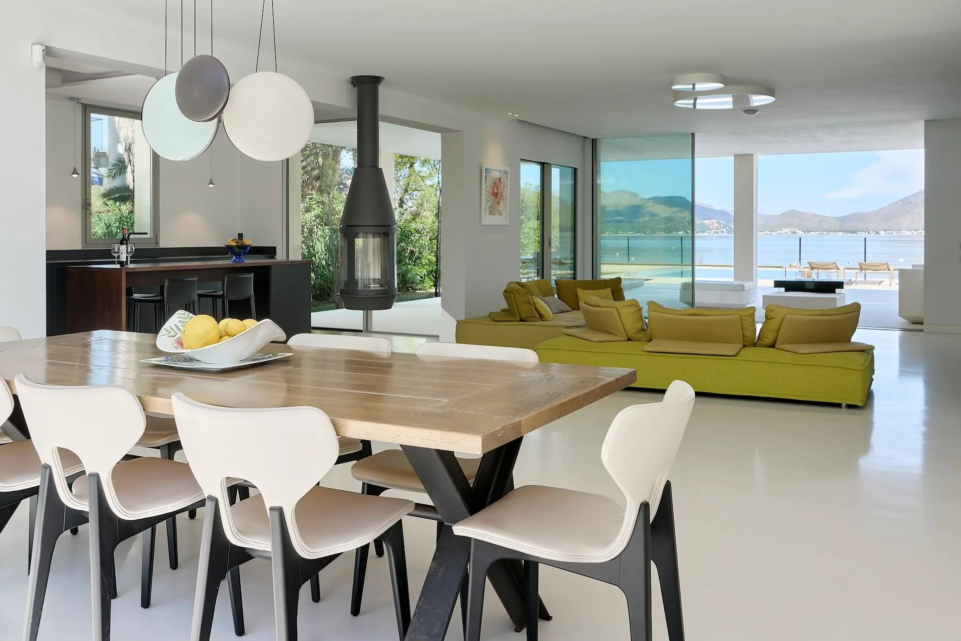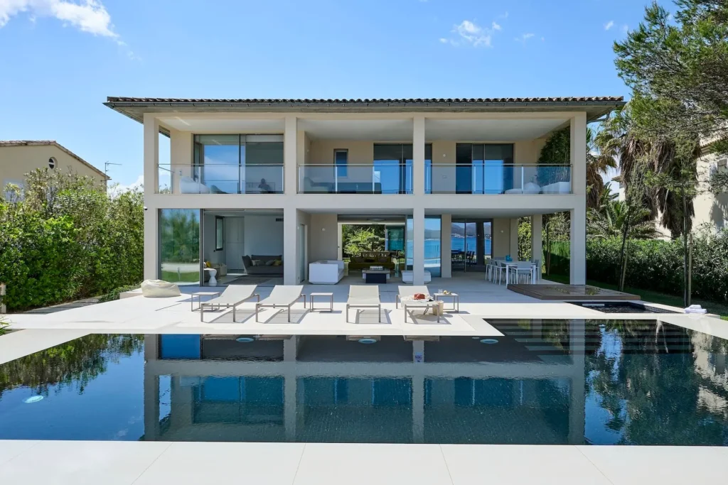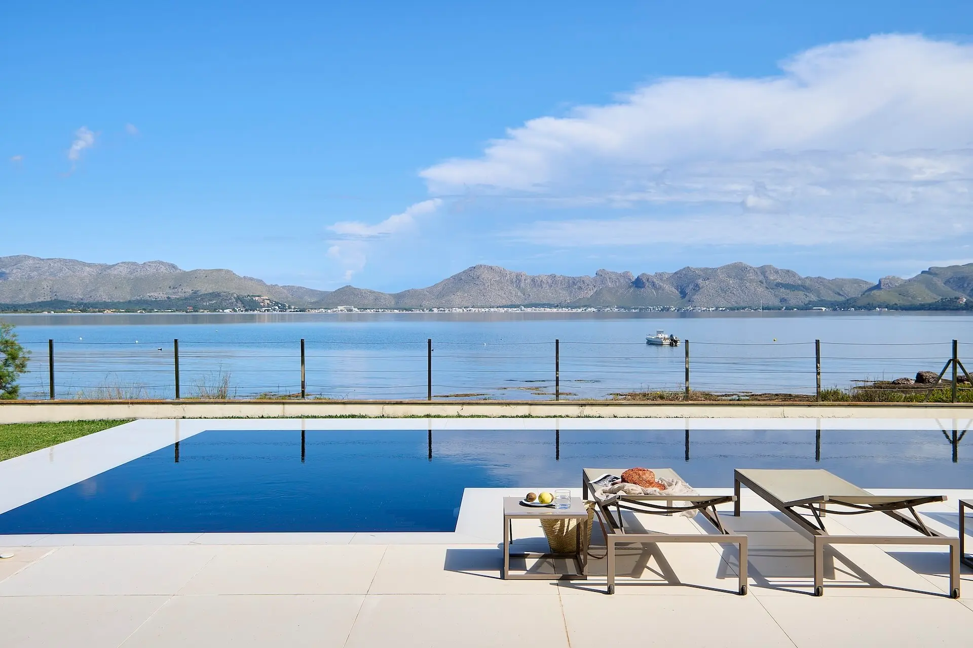 Located on the peaceful coastline of Barcarès, just minutes from the historic town of Alcúdia, this exceptional luxury villa offers an exclusive setting right by the Mediterranean. Designed to combine elegant comfort with breathtaking natural surroundings, the property enjoys uninterrupted views over the bay and direct access to the sea. The spacious terrace with infinity pool and jacuzzi creates a relaxing atmosphere where guests can unwind while taking in the coastal scenery. With space for up to 10 guests, it is an ideal holiday rental in Mallorca for families or groups seeking privacy, style, and an unbeatable seafront location.