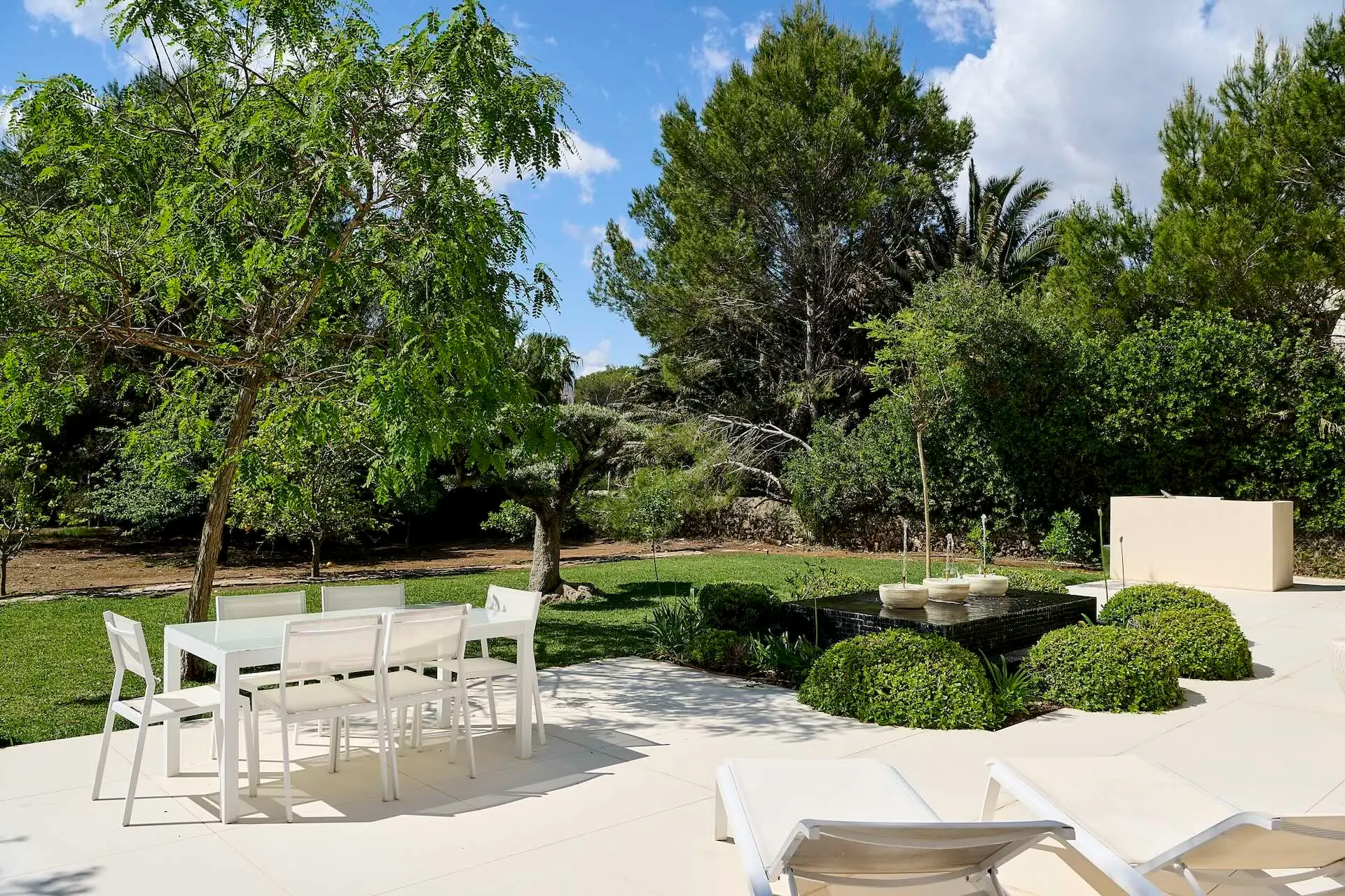 Outside, the villa is designed for enjoying Mallorca’s Mediterranean lifestyle. The expansive front terrace features an infinity-style swimming pool, jacuzzi, sun loungers, and uninterrupted sea views. A landscaped garden with palm trees creates a tranquil backdrop, while the barbecue area and outdoor dining space are perfect for long summer evenings with family and friends. Guests can also enjoy a rooftop terrace with stunning views across the Bay of Alcudia—an ideal spot for sunset drinks or stargazing.