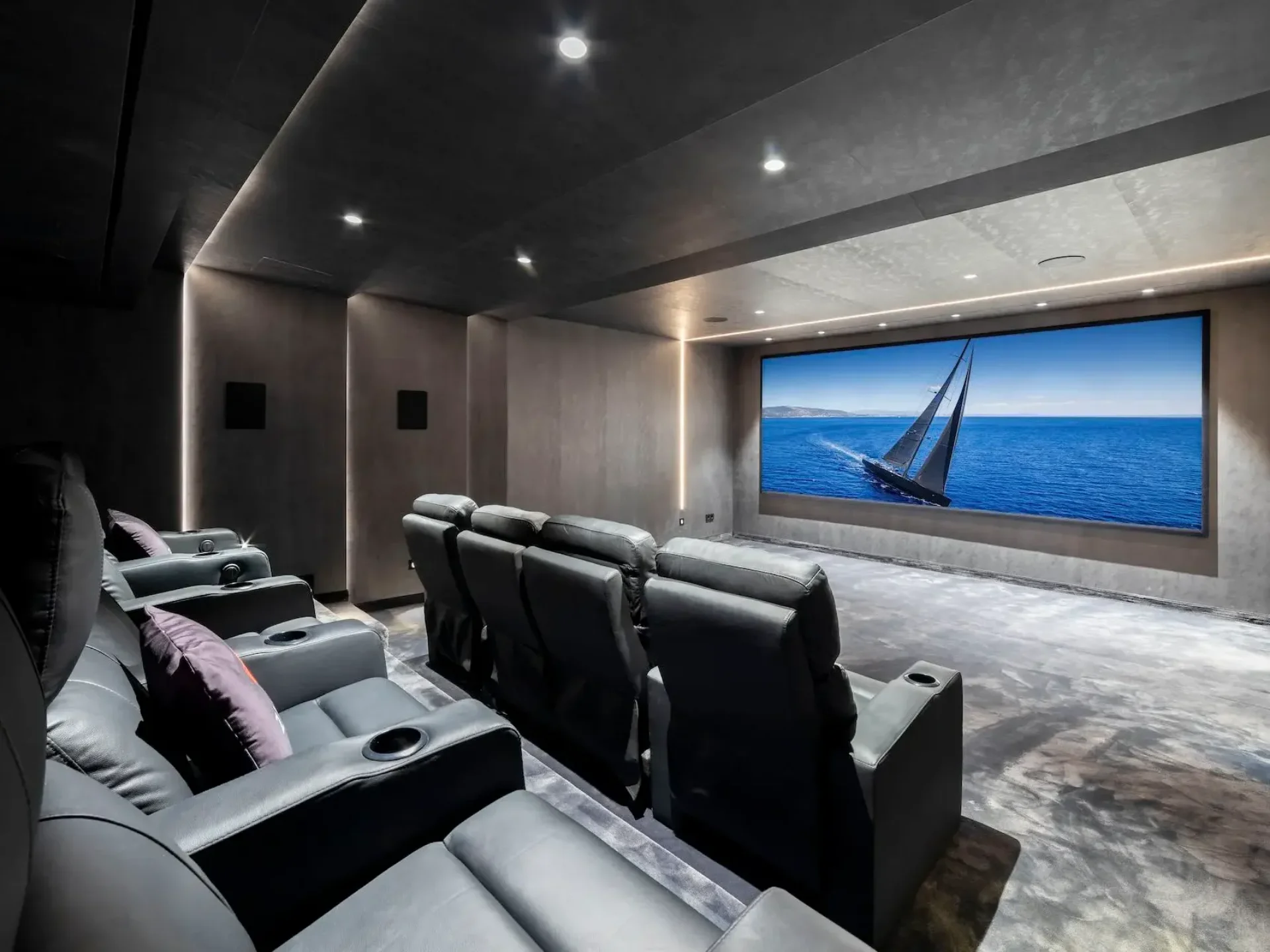 Outside, a two-metre-deep swimming pool (heating available on request) is surrounded by panoramic sun terraces, covered lounge areas, and an al fresco barbecue dining zone designed for sunset gatherings. Entertainment and comfort are elevated with a private gaming and cinema room featuring a 75-inch screen and PlayStation 5, outdoor cinema setup, integrated sound system, and smart home technology that controls lighting, climate, and audio throughout the villa.