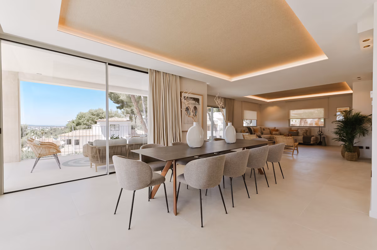 Set in the prestigious hillside enclave of Cas Català, this exceptional luxury villa offers a refined Mediterranean escape just minutes from Palma. Surrounded by lush greenery and overlooking Mallorca’s stunning coastline, the property combines privacy and panoramic sea views. Designed for upscale holiday living, the villa accommodates up to 12 guests and delivers a seamless blend of contemporary elegance and relaxed island charm. With expansive living spaces, premium amenities, and a tranquil setting, this Mallorca villa rental is ideal for families or groups seeking a sophisticated retreat and offers the perfect balance of luxury, comfort, and location.