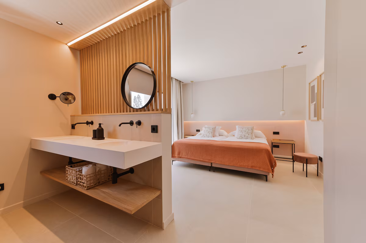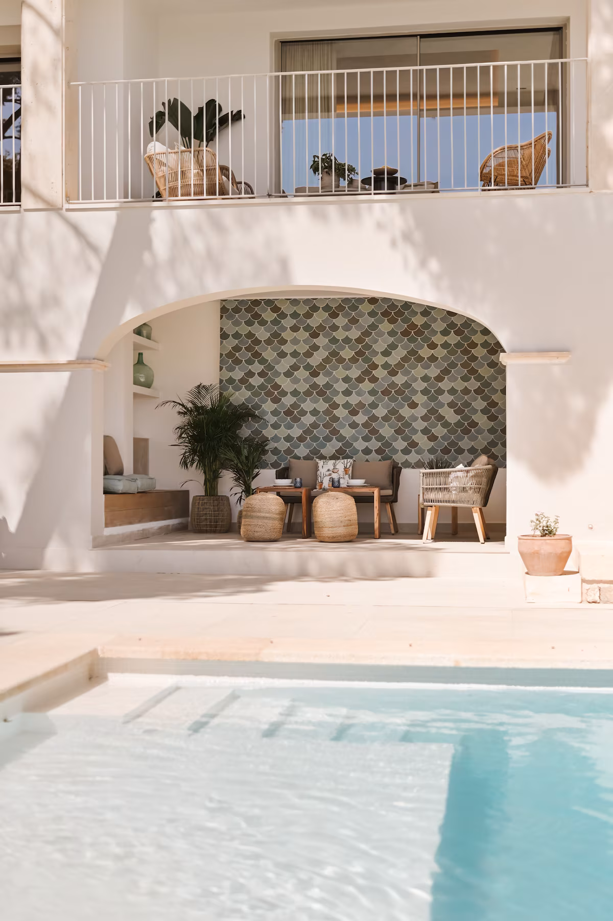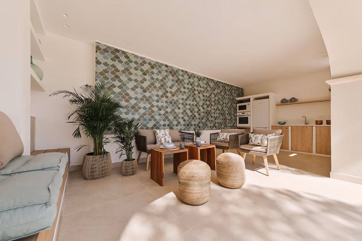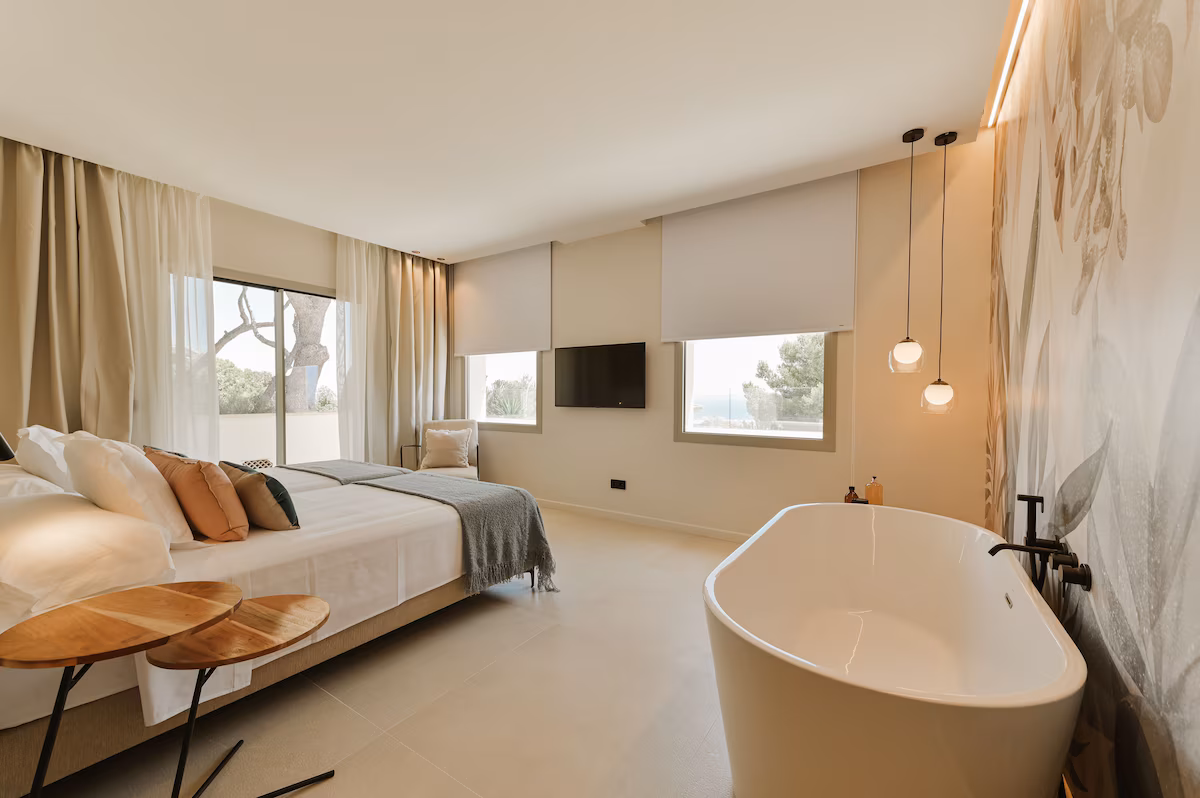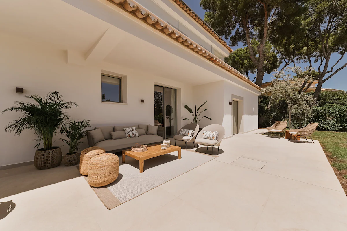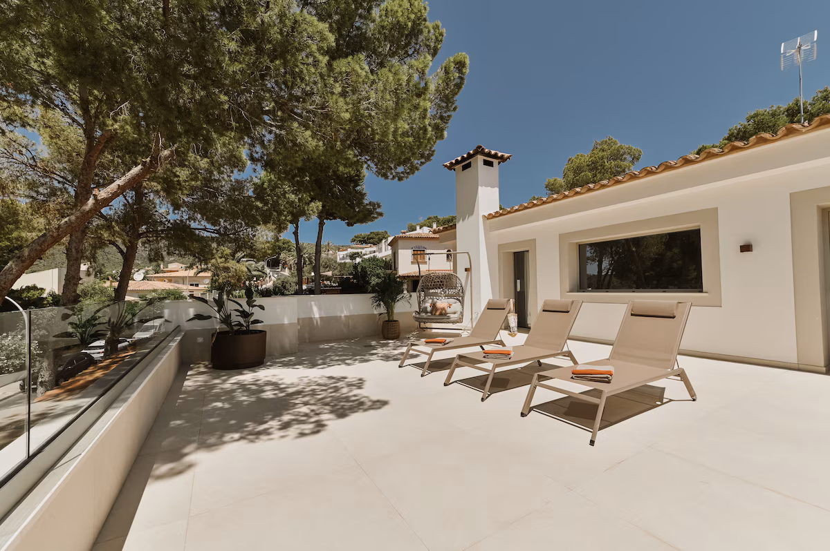Outdoor living is at the heart of this luxury Mallorca villa. Generous terraces, shaded lounge areas, and sun-drenched patios create multiple spaces to relax and entertain while enjoying uninterrupted sea views. The private swimming pool is surrounded by comfortable loungers, offering the perfect setting for lazy days under the sun. Guests can dine al fresco, enjoy sunset drinks, or simply unwind in the peaceful surroundings. Elevated vantage points and landscaped outdoor areas enhance the sense of exclusivity, allowing you to fully embrace the Mediterranean lifestyle in a serene and private setting.