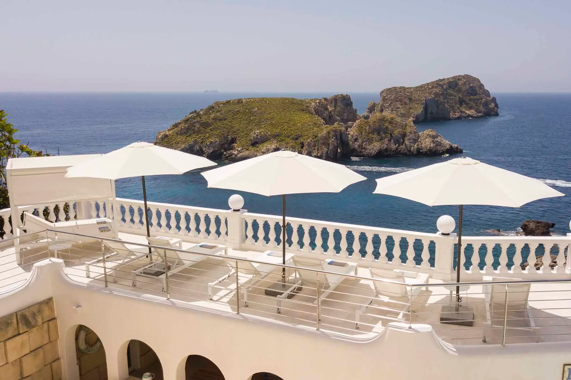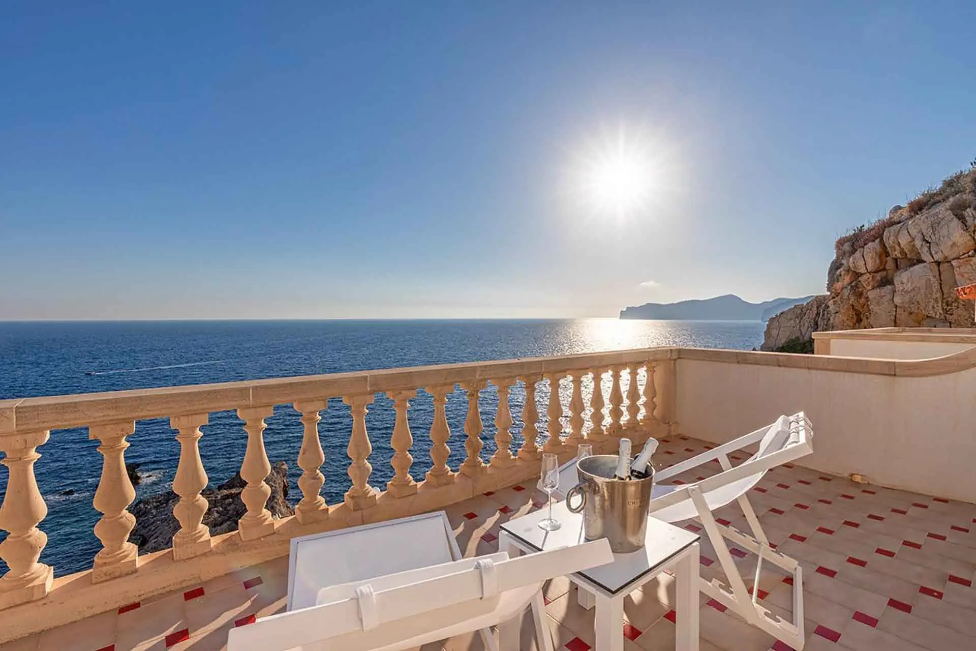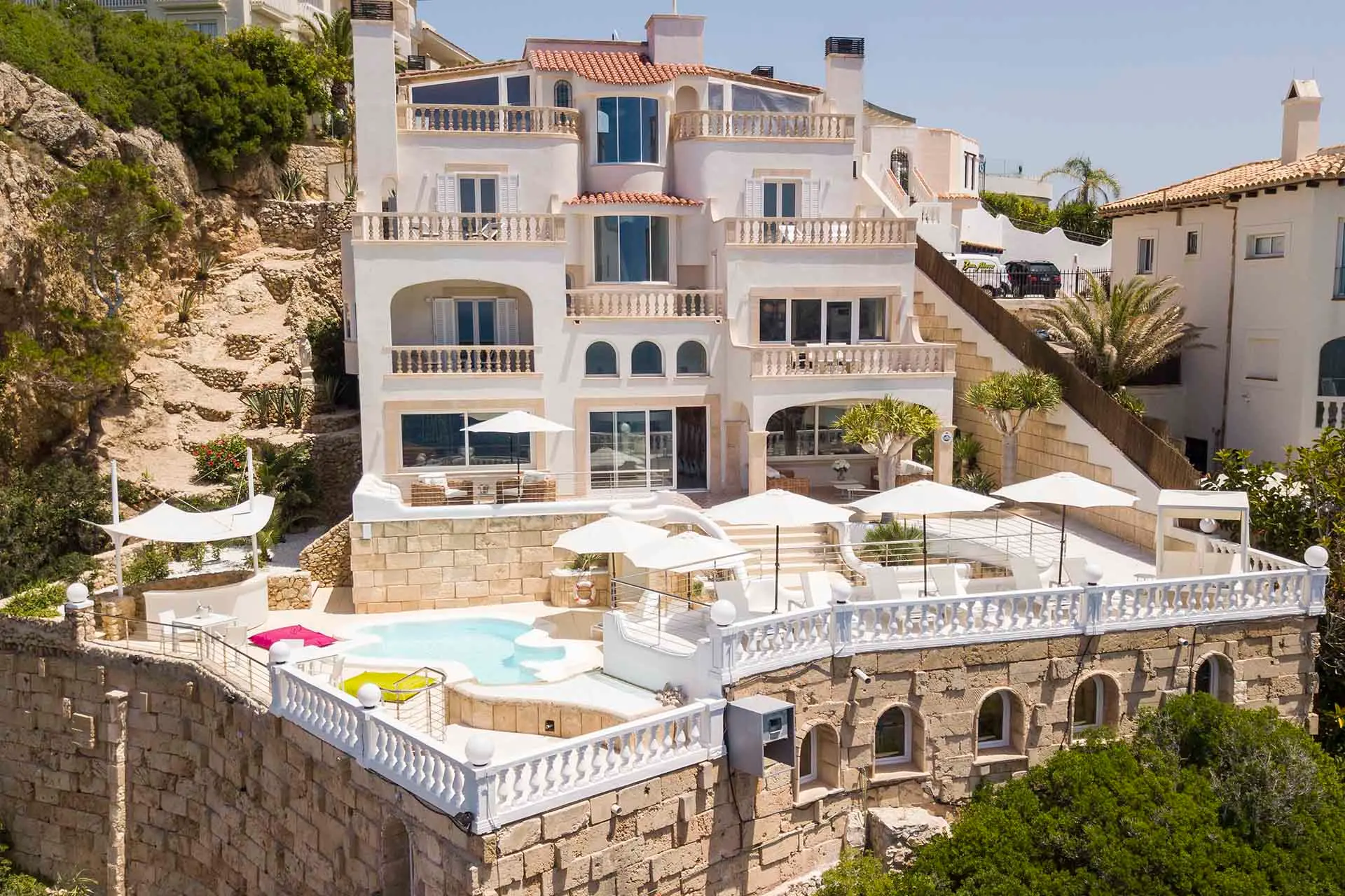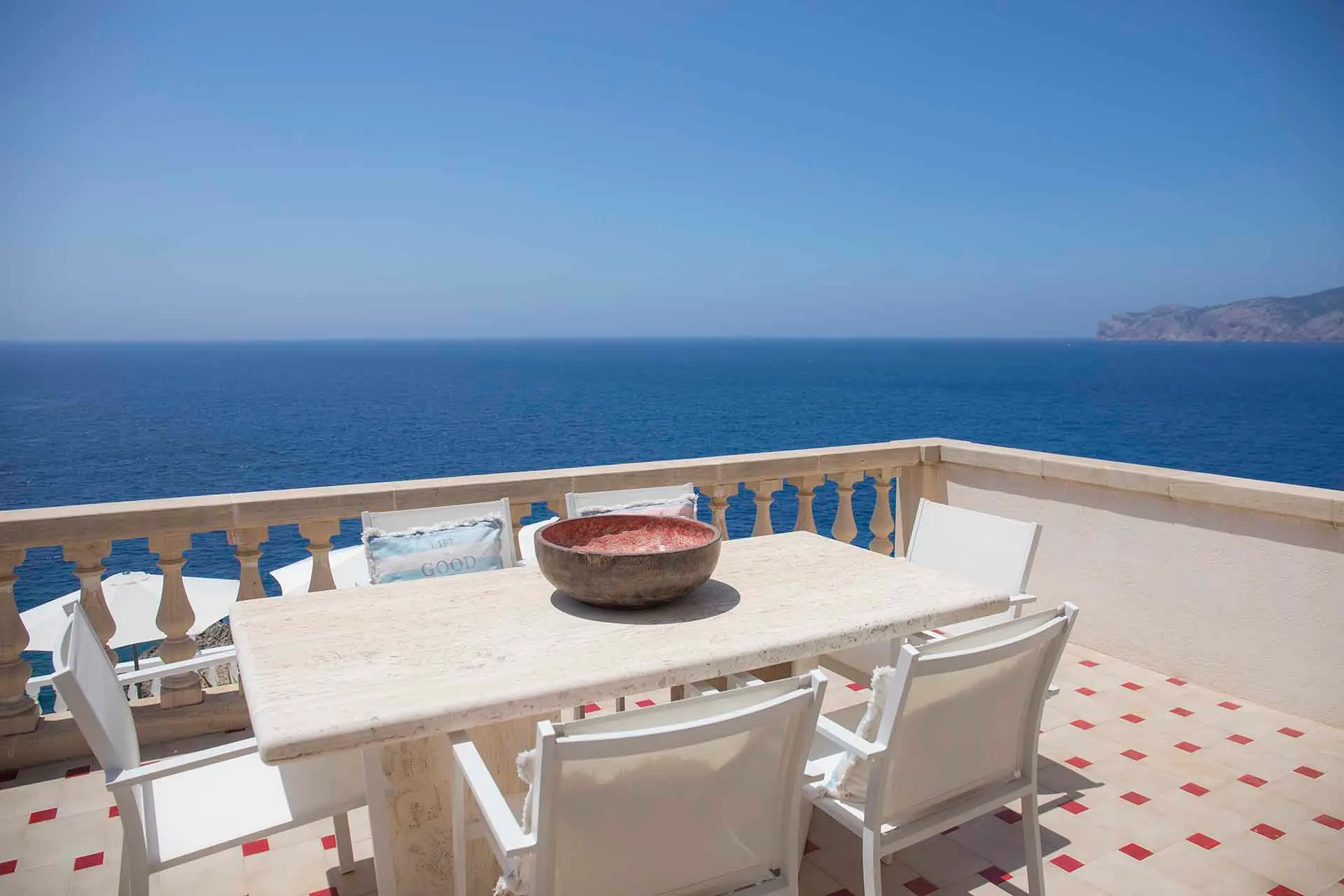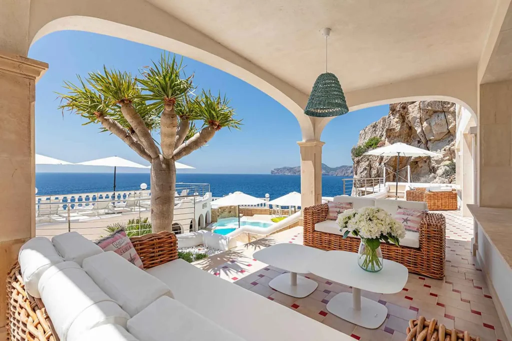 This superb clifftop villa is set overlooking the Mediterranean with magnificent sunset views. Enjoy its multiple sunny terraces and corners where you can sunbathe, celebrate events, enjoy the sea breeze, or cool off in its wonderful pool. This luxury villa has stunning views over the Malgrats Islands in the privileged area of Santa Ponsa, in southwest Mallorca. If you were thinking of a sea view villa, this is the ideal villa to preserve your privacy.