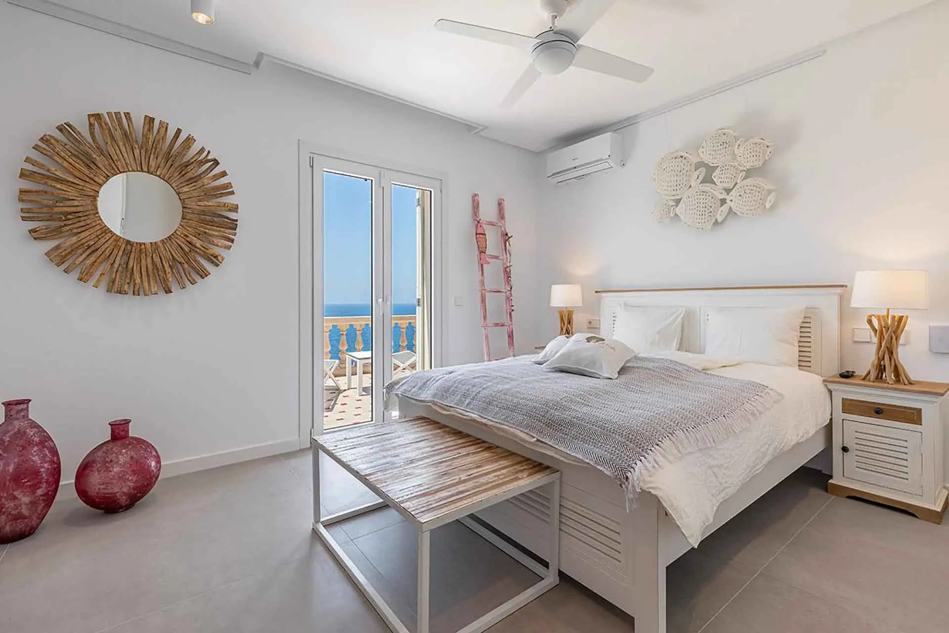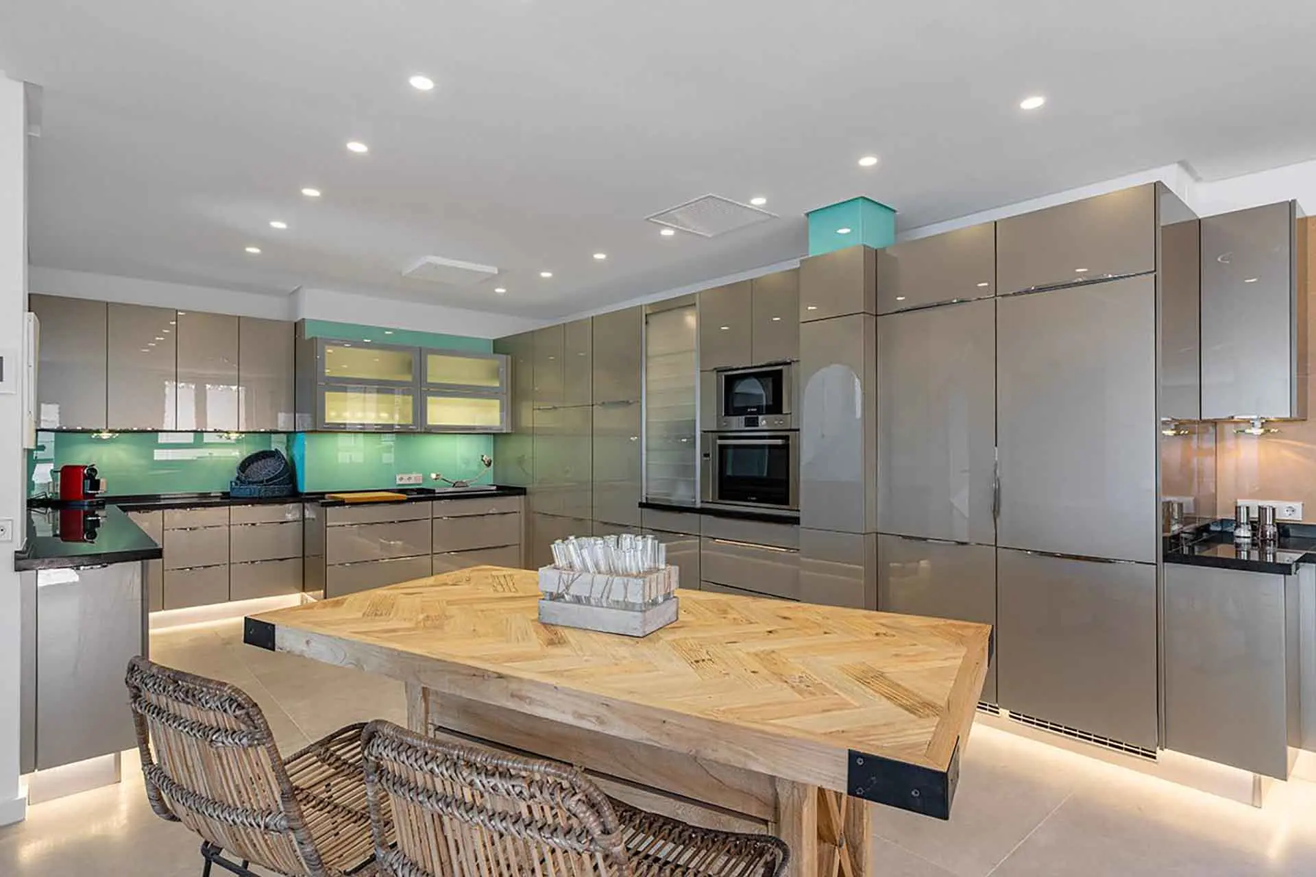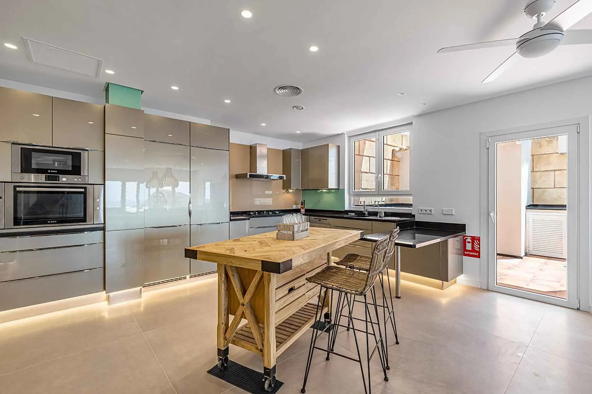 Above these, the master bedroom is on the same floor as the dining room and kitchen, both rooms having their own terraces with great views. On the upper floor we find four double rooms with ensuite bathrooms. Furthermore, this villa and its gardens have a powerful WiFi ideal for your work or to play your favourite tunes on the Sonos sound system.