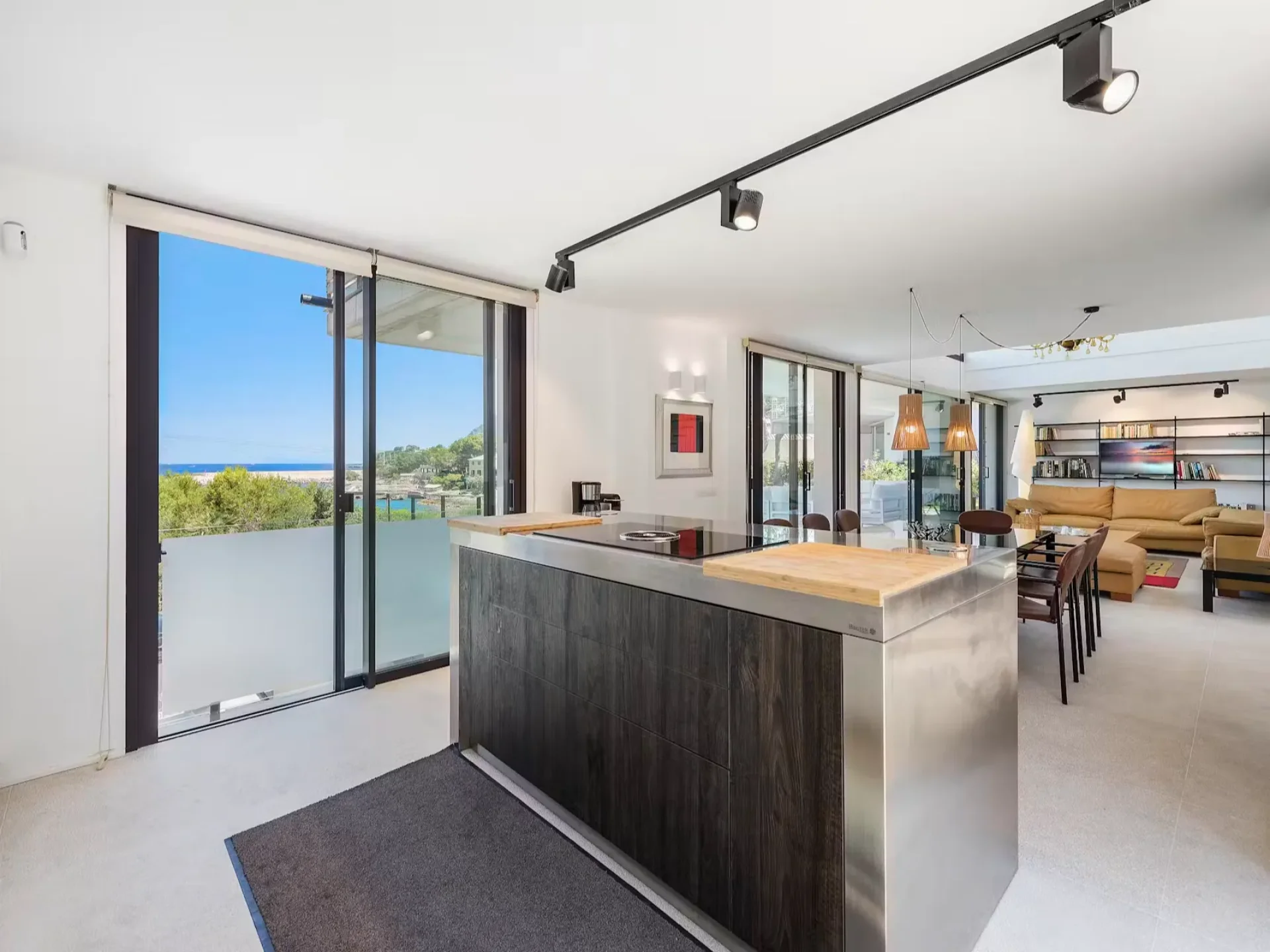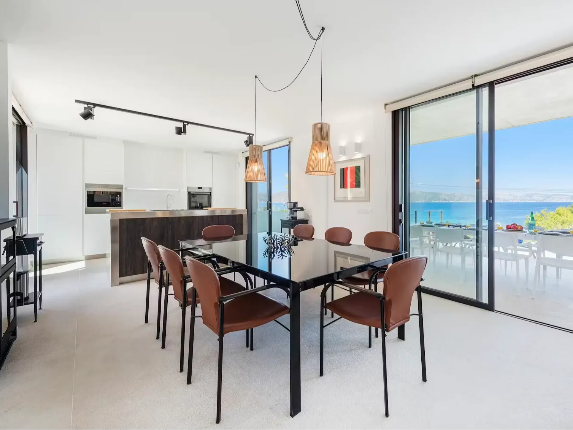 The villa features 4.5 beautifully designed bedrooms, each enjoying stunning sea views and abundant natural light. The open-plan living and dining area is framed by floor-to-ceiling windows that open directly onto the main pool terrace, creating seamless indoor–outdoor flow and maximizing the Mediterranean panorama.