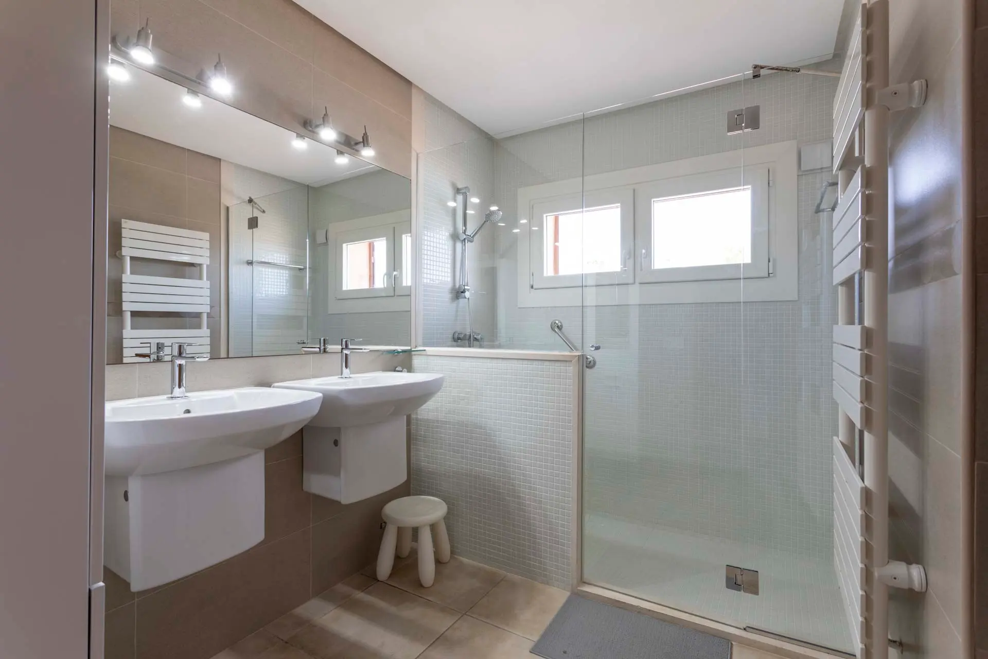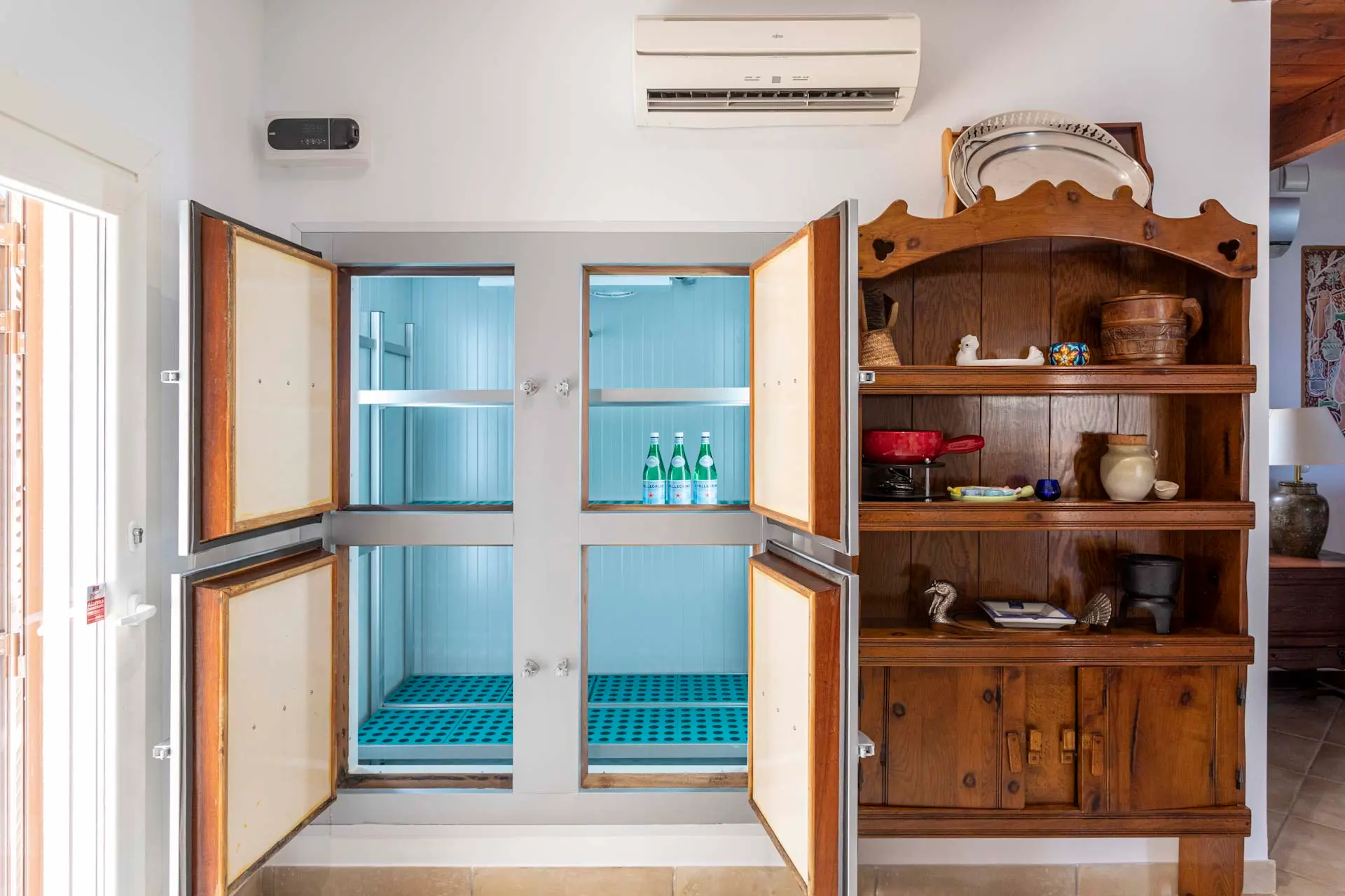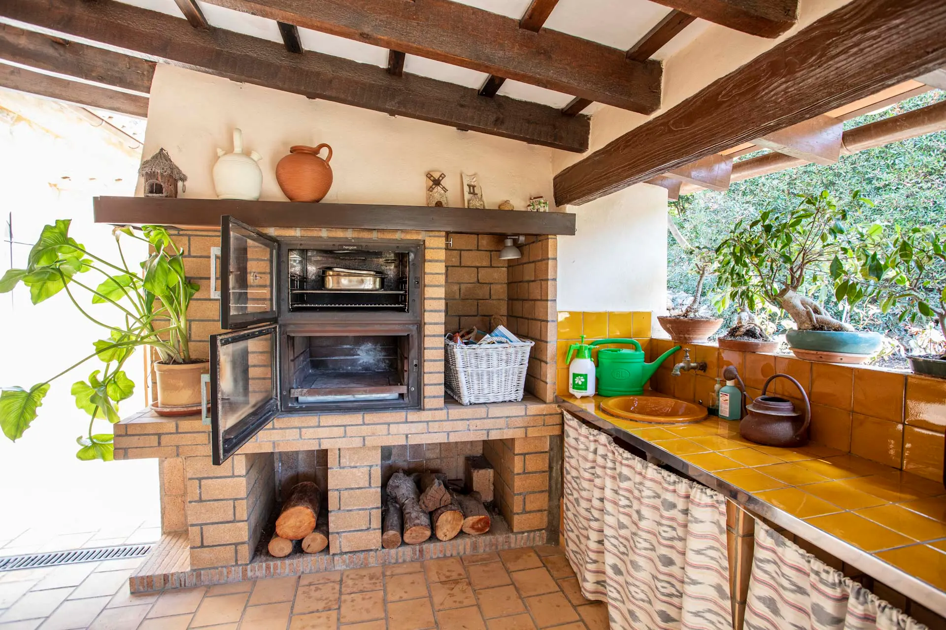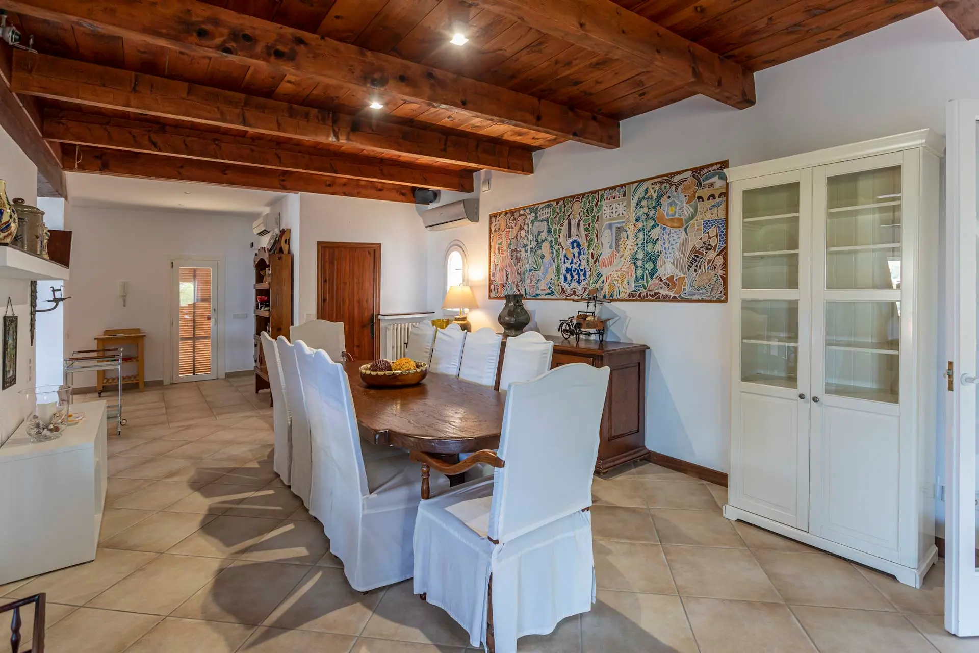 Inside, the villa combines elegance with comfort. The main living room is spacious yet welcoming, featuring plush sofas and a fireplace that creates a warm atmosphere on cooler evenings. The modern kitchen has been tastefully renovated and comes fully equipped with high-end appliances, a central island and ample storage. The property comfortably accommodates up to 12 guests across six bright and contemporary bedrooms, all equipped with individual air conditioning. Several bedrooms offer sea views, including the luxurious master suite, which features an en-suite bathroom and a large flat-screen TV.
