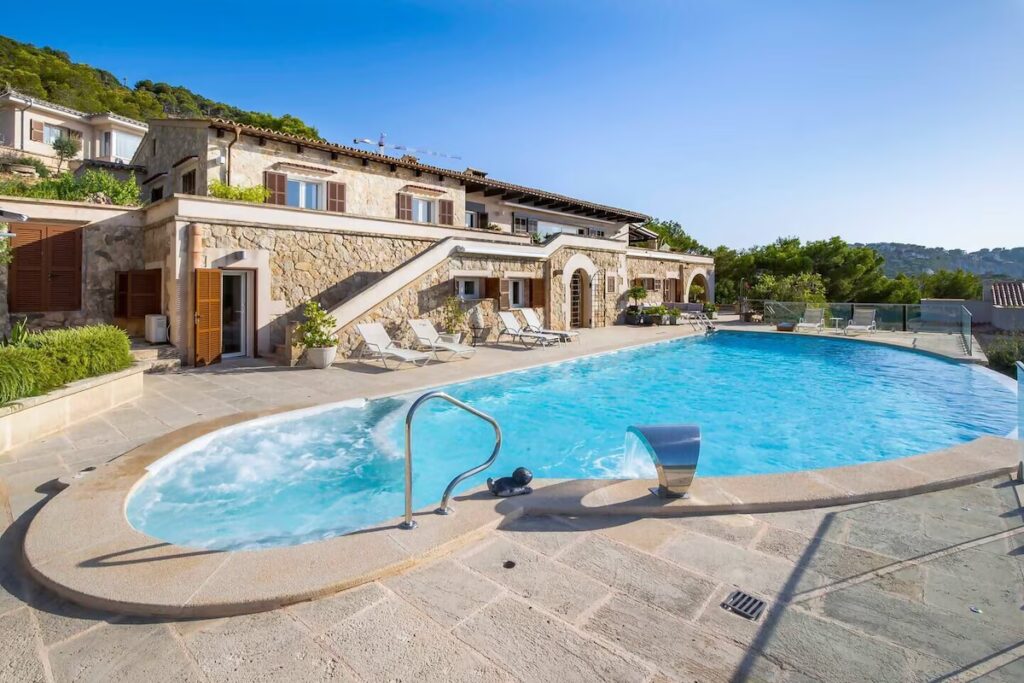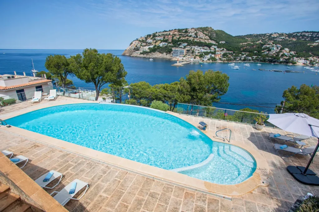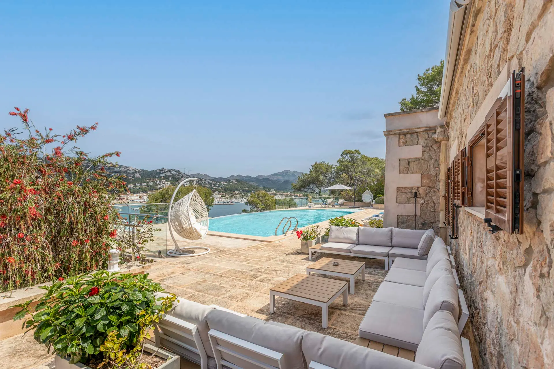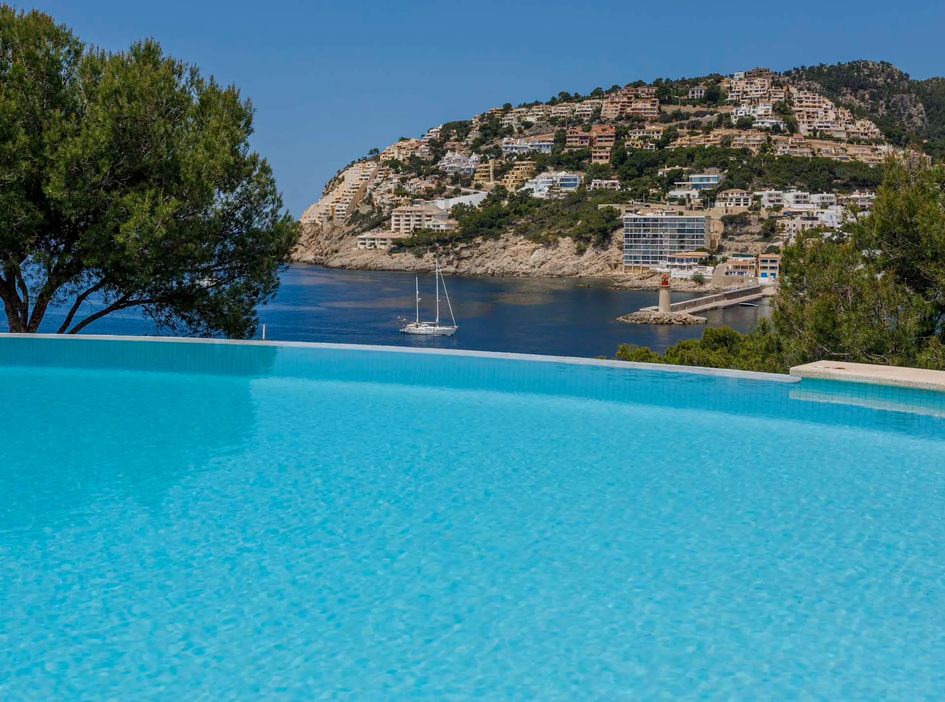 Perched on an elevated hillside above the picturesque harbour of Puerto Andratx, this exceptional luxury villa offers panoramic views of the Mediterranean Sea and surrounding mountains.