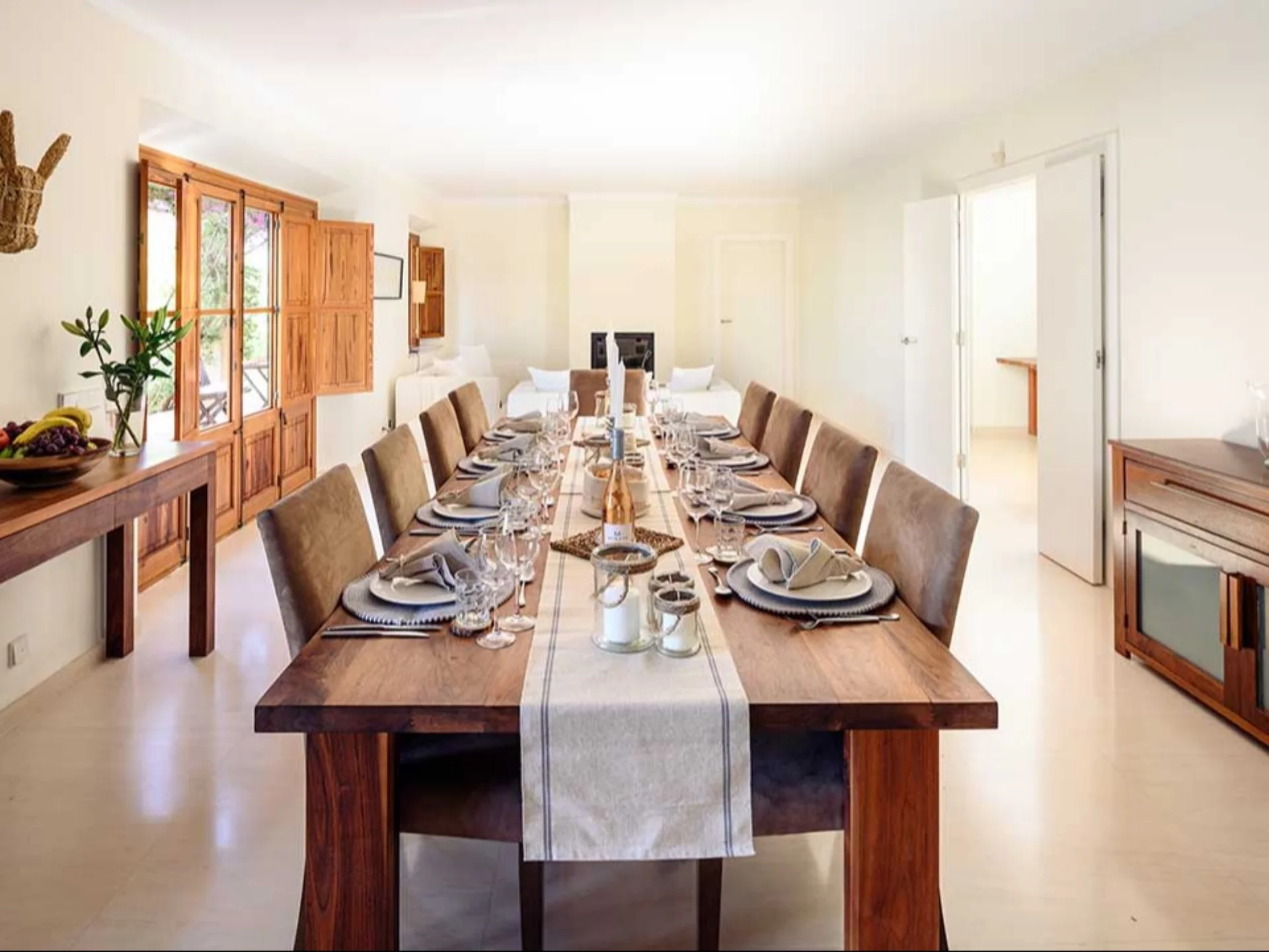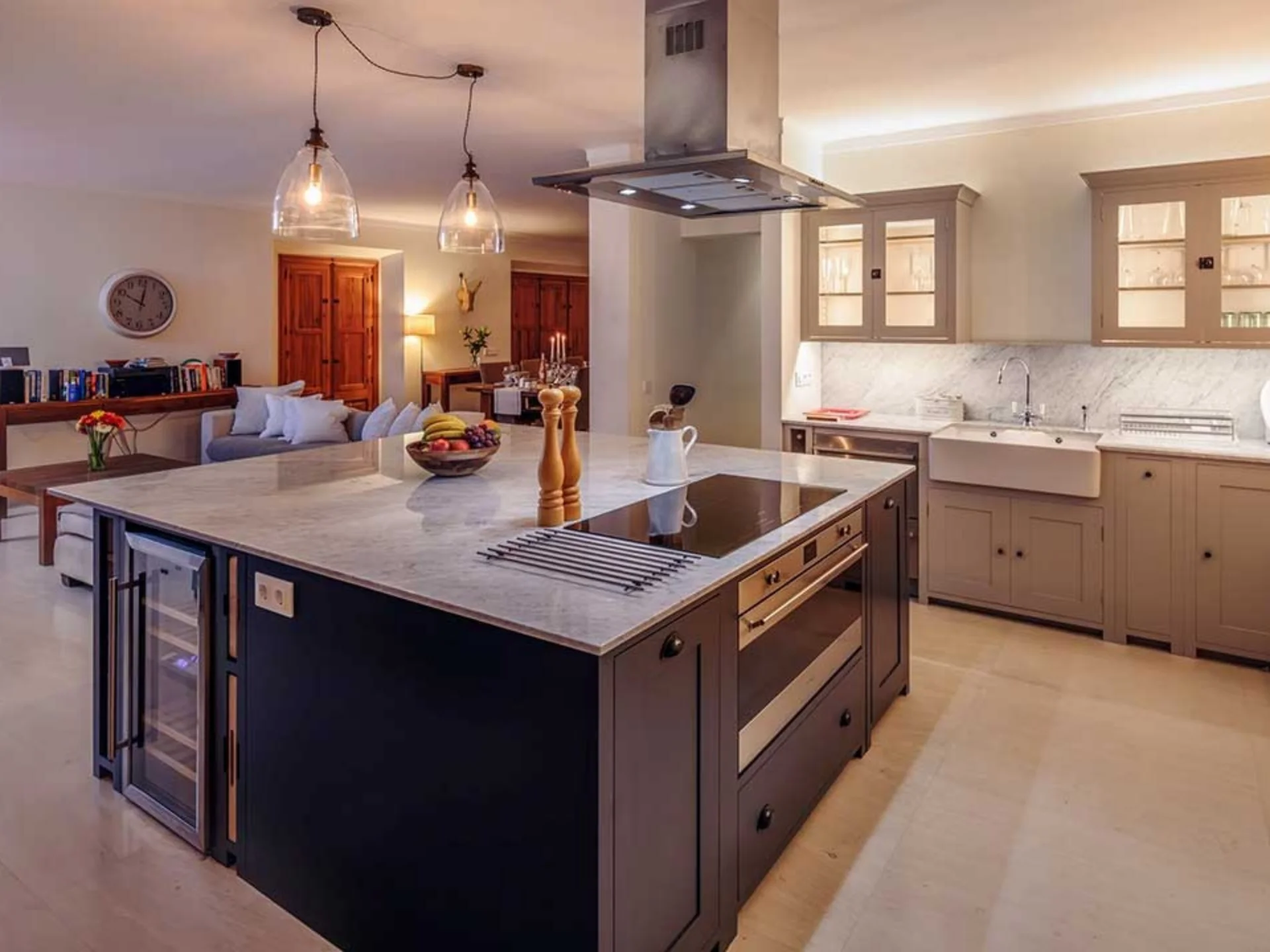 Blending traditional Mallorcan architecture with contemporary minimalism, Villa Serena is a refined countryside retreat located just moments from Pollença. Its natural stone façade reflects classic finca heritage, while the interiors reveal clean lines, soft limestone flooring, and expansive open-plan spaces designed for calm, modern living.