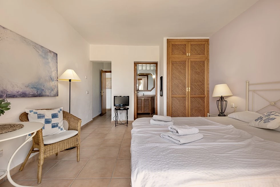 The estate is equipped with modern comforts, including a solar power system, generator, underfloor heating, and double-glazed windows. Water is supplied reliably by tanker trucks. With a rental license for ten guests, this finca also represents a sound investment opportunity.