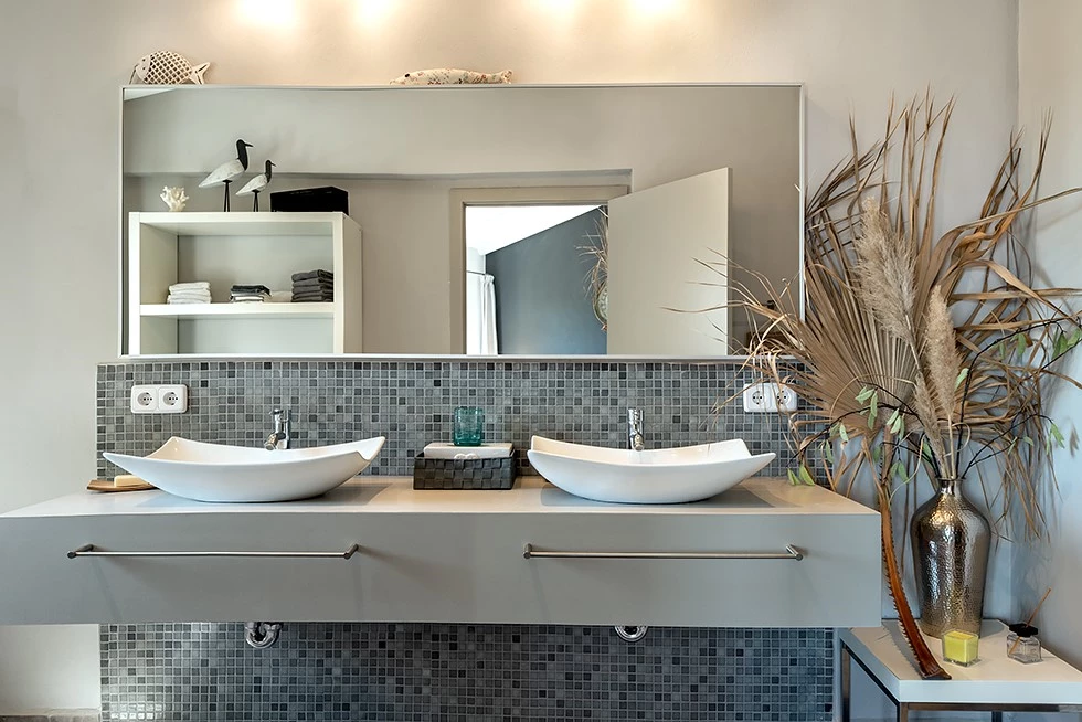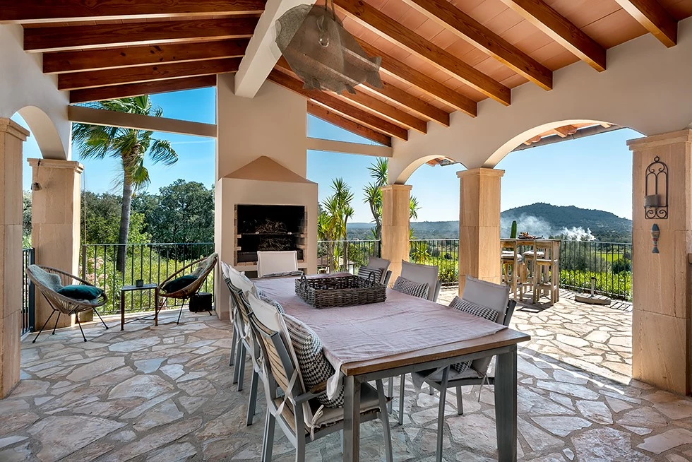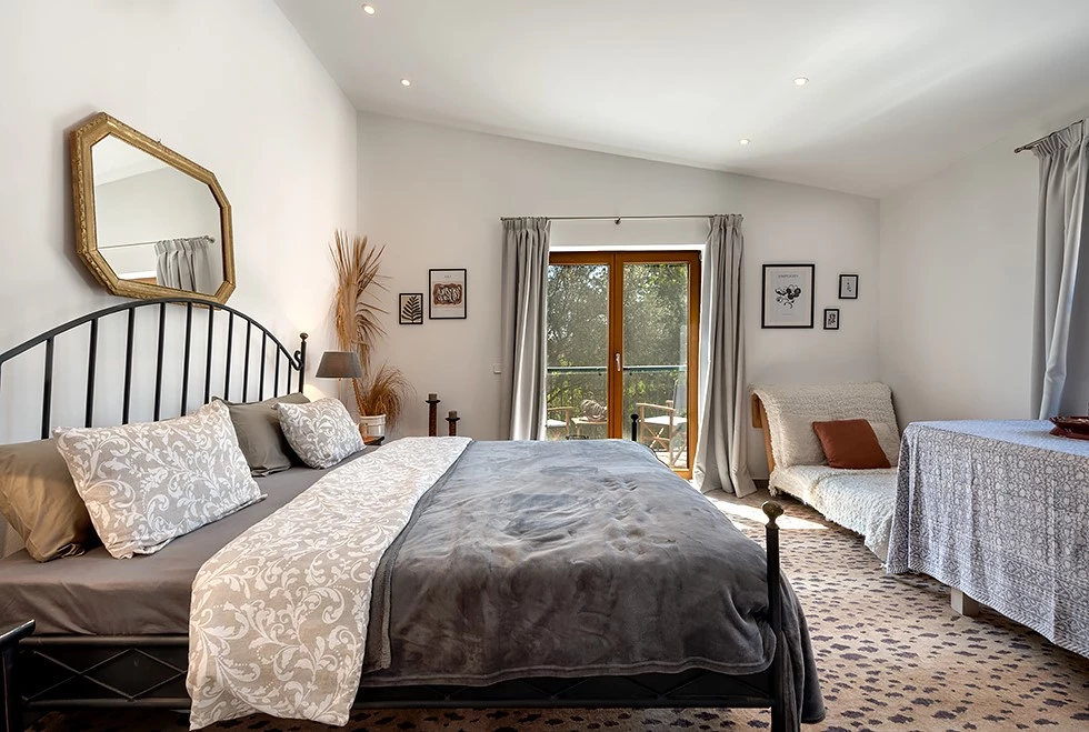 The residence is thoughtfully distributed and includes four spacious double bedrooms, each with its own en-suite bathroom. One of the bedrooms is arranged as a private guest suite, complete with its own living area and kitchen, providing independence and comfort. The home also offers a fully equipped main kitchen, a separate laundry room, a bright and airy living space, a guest toilet, and ample parking. Several barbecue areas create perfect settings for entertaining.