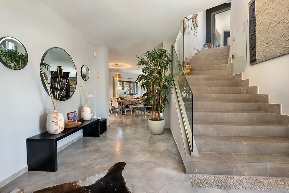 Built to a high standard, the villa combines contemporary design with traditional Mediterranean touches, featuring clean architectural lines and premium finishes throughout. Modern comforts include air conditioning, underfloor heating, a fireplace, electric heating, and double-glazed windows. Recently installed solar panels further enhance the property’s efficiency and sustainability.