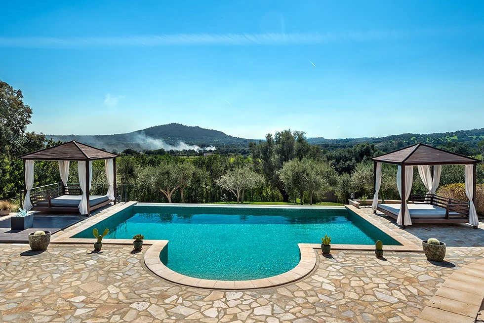 Set on an expansive 21,000 m² plot, this remarkable estate offers absolute privacy, breathtaking open views, and an exceptional outdoor lifestyle. Designed to embrace the natural beauty of Mallorca, the property features beautifully landscaped grounds, a stunning swimming pool, and a relaxing jacuzzi.