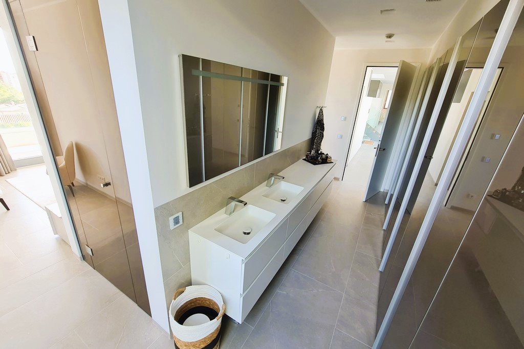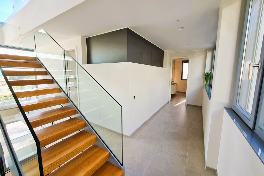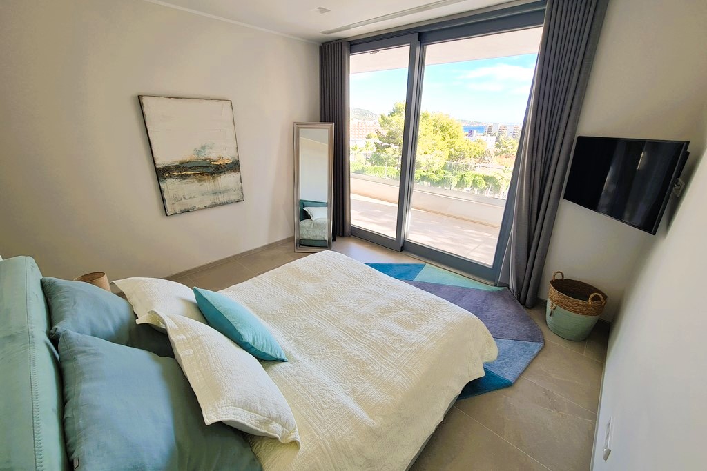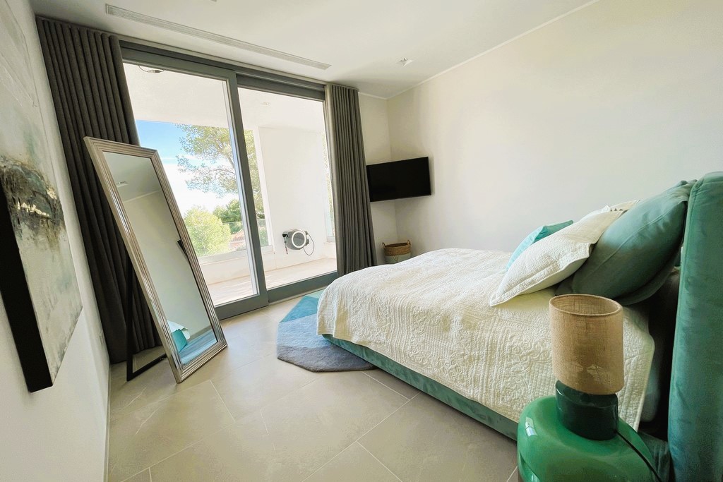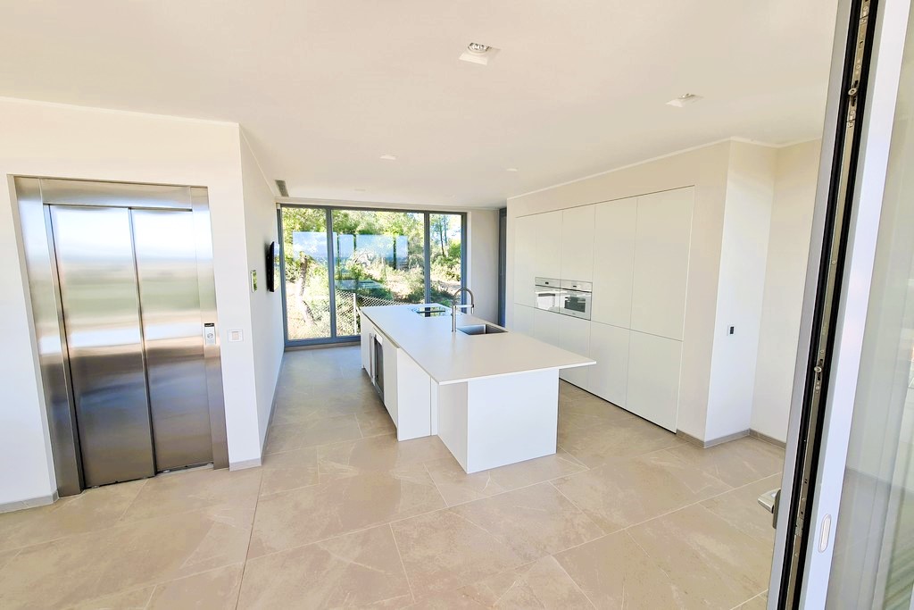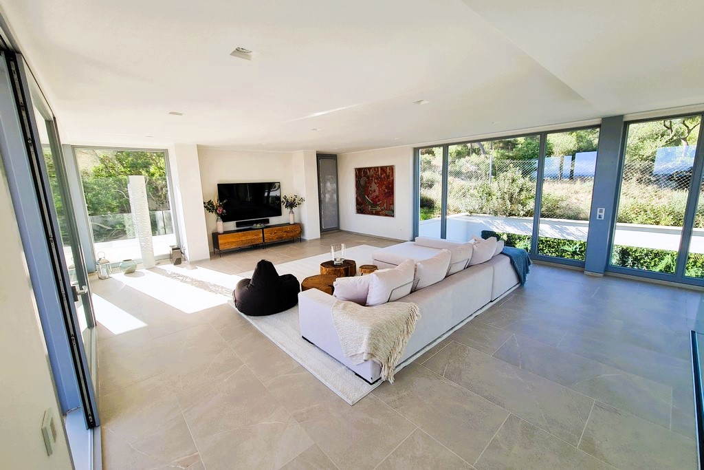 The residence features five elegant bedrooms, all with en-suite bathrooms, providing both comfort and privacy. The main living level is defined by its open-plan layout, where a spacious lounge, dining area, and designer kitchen flow effortlessly onto a large terrace with breathtaking views over the Mediterranean.