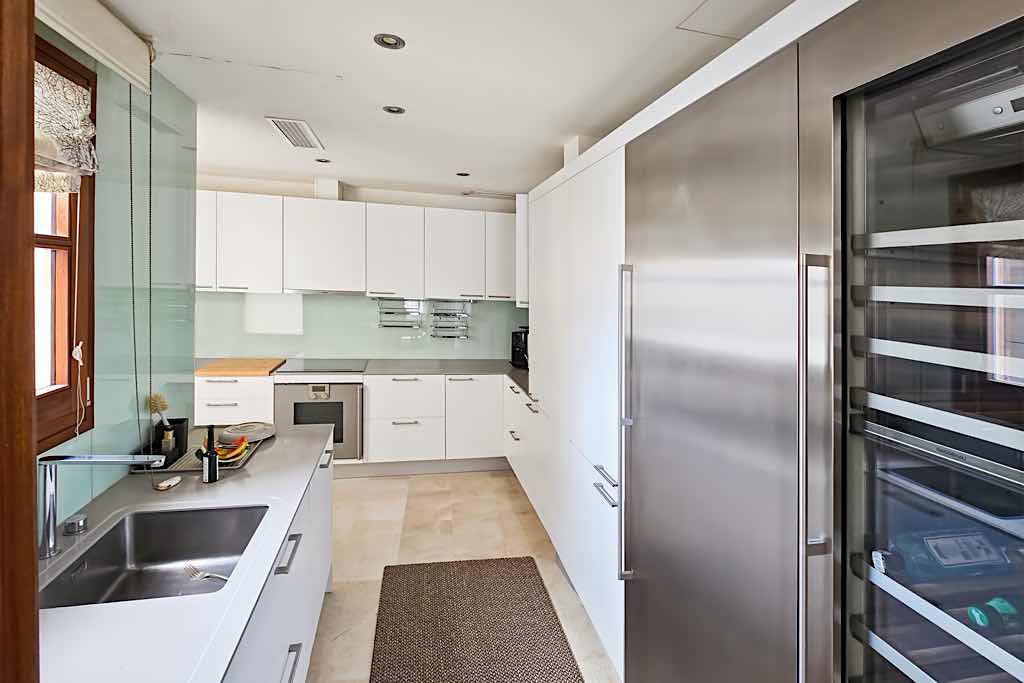 The property is distributed across several levels, featuring four elegant en-suite bedrooms, two of which enjoy private terraces. The main living area is bright and spacious, with an open-plan layout that seamlessly connects the lounge, dining area, and a fully equipped modern kitchen, all with access to an additional terrace.