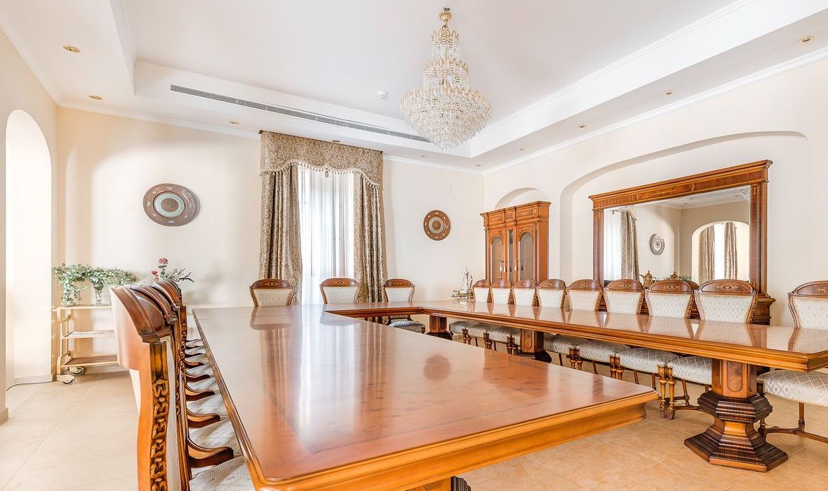 The outdoor areas are equally impressive, with a beautifully maintained 36,000 m² park featuring mature trees including olive, almond, lemon and orange groves. The estate also offers a swimming pool (12 x 6 m), illuminated tennis court, football field and extensive landscaped grounds, creating a true Mediterranean estate lifestyle.