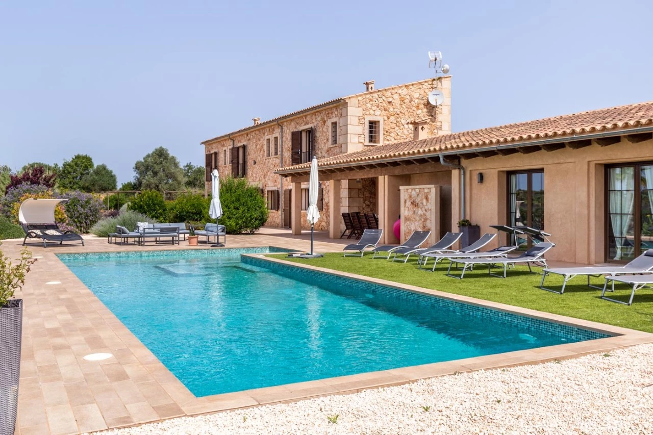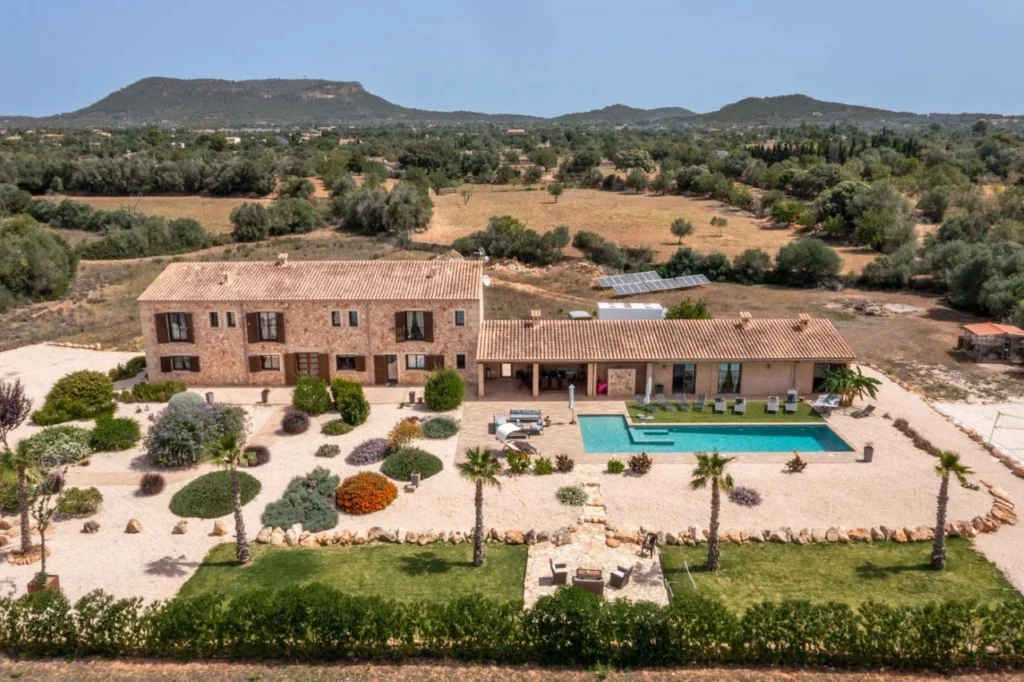 Located in a peaceful yet well-connected area near the centre of Llucmajor, this elegant country home combines contemporary comfort with authentic Mallorcan character, highlighted by its refined natural stone façade.