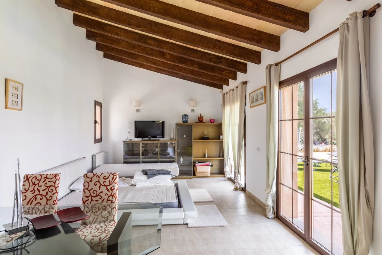 A separate guest house adds an extra level of comfort and privacy, offering its own bedroom and bathroom, with direct access from a covered terrace—an ideal setting to enjoy the stunning sunsets of Llucmajor.