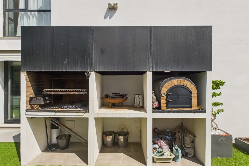 Outside, the property becomes a private Mediterranean retreat, with a beautifully maintained garden, a swimming pool, outdoor shower, and a fully equipped barbecue area with a pizza oven—perfect for entertaining and enjoying the island lifestyle.