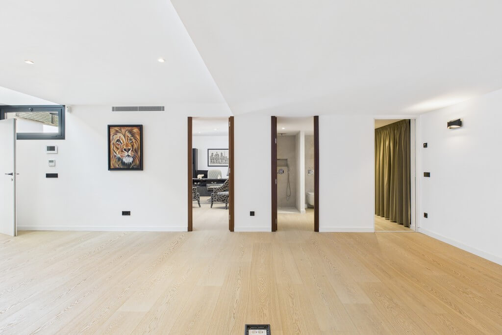 The home features several spacious bedrooms and stylish bathrooms, including a luxurious master suite with a spa-like bathroom and a walk-in wardrobe. Additional flexible spaces on the lower level provide the perfect setting for a home cinema, gym, or office, along with an extra bedroom ideal for guests or remote work.
